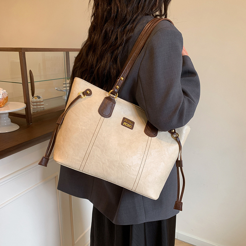 外国貿易レトロ大容量ショルダーバッグ女性2025新型ファッション洋気通勤ハンドバッグシンプルなトートバッグ