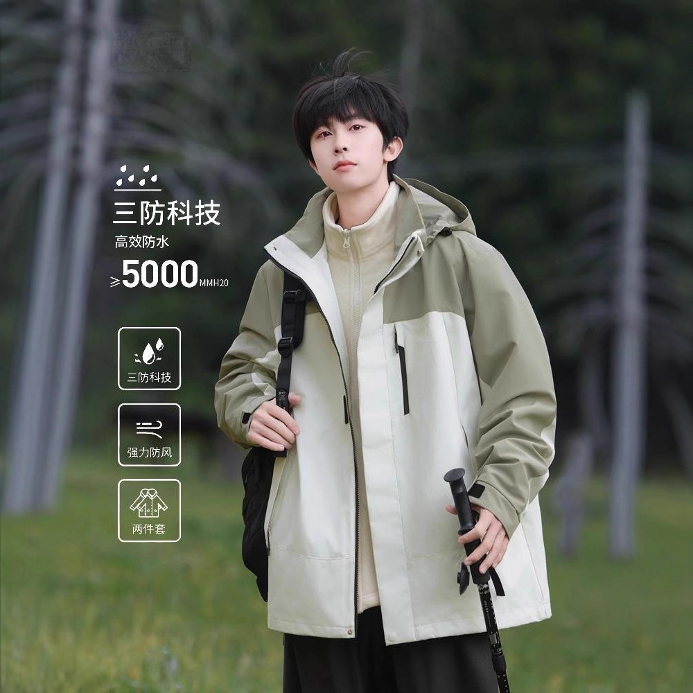 三合一可拆卸内胆冲锋衣潮牌百搭宽松夹克男户外运动登山冲锋衣男