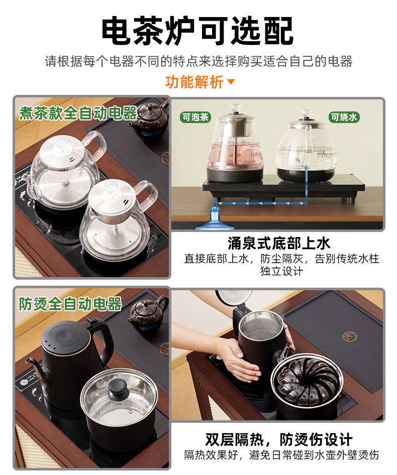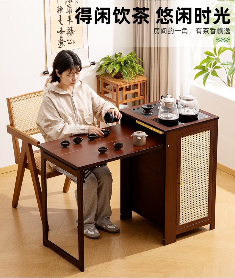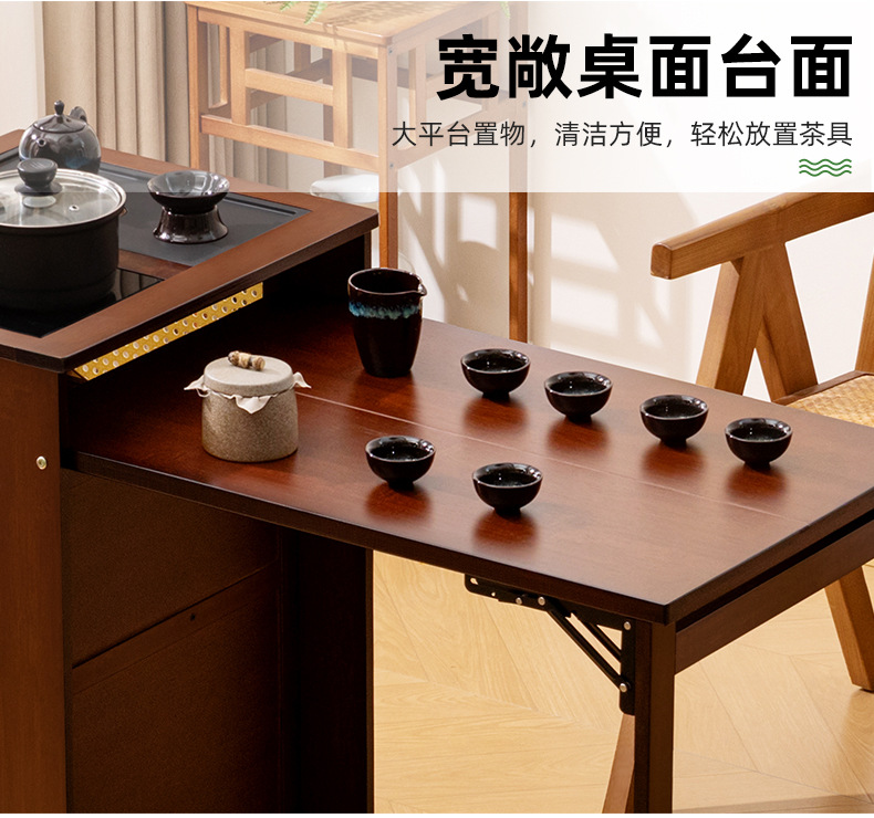 移動茶卓家庭用小茶台実木茶車茶卓セット全自動湯たんぽ一体茶箱