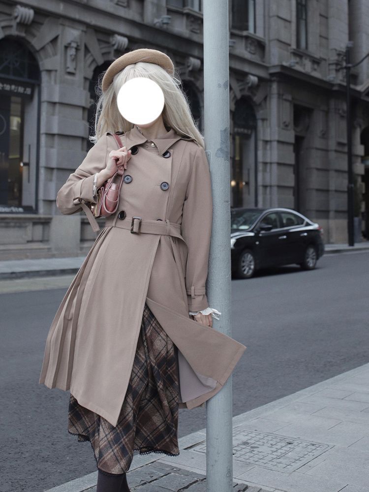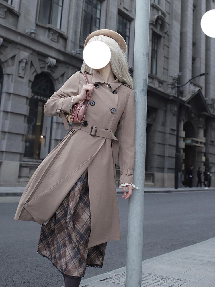 颜色 杏色长袖上衣,格纹半裙,杏色长袖上衣+格纹半裙