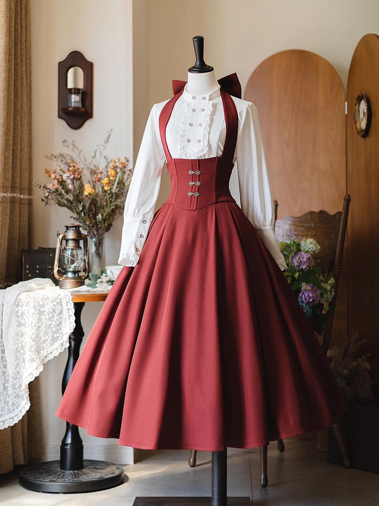 经典瞎裁背带裙+英伦风束袖衬衫两件套2025秋冬复古优雅cla系套装