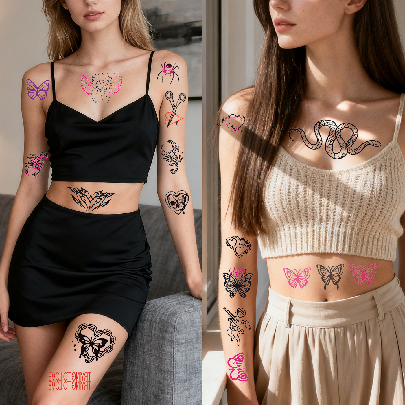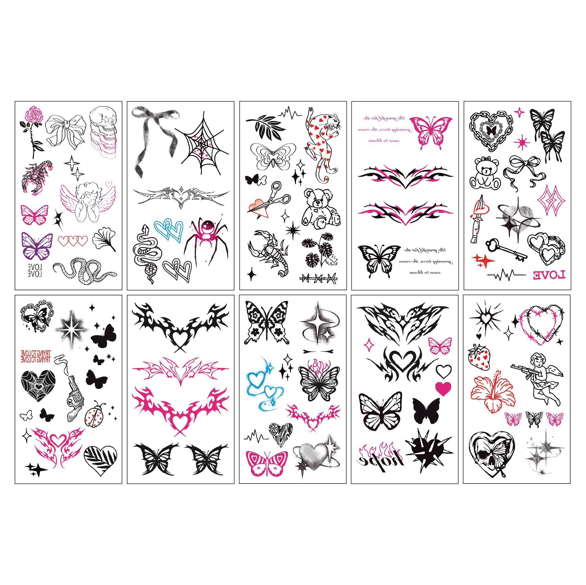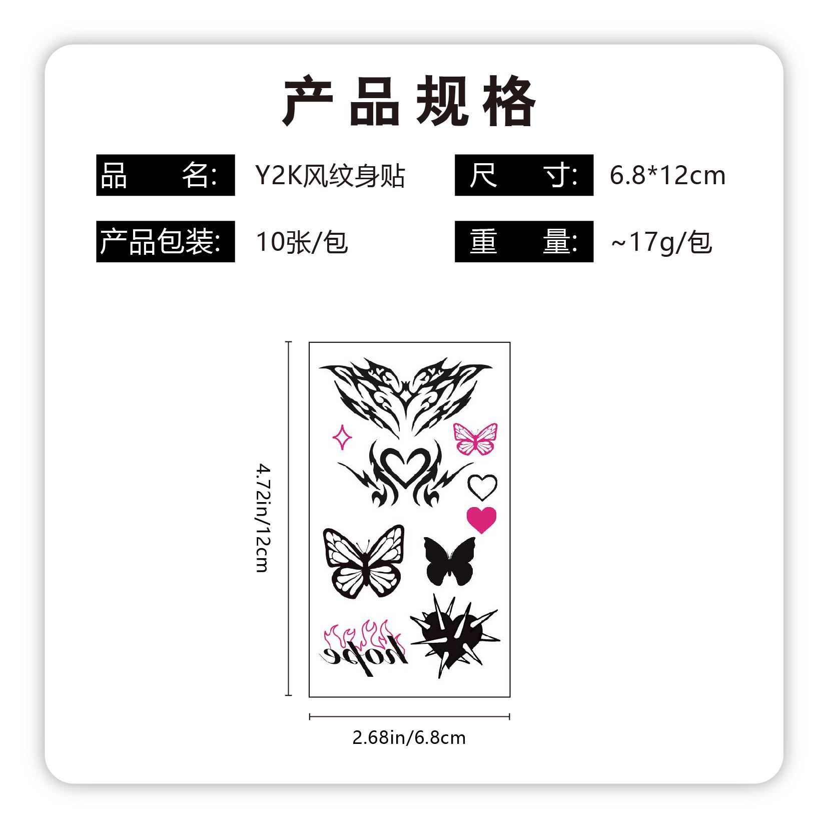 新款潮流妩媚y2k风纹身贴蝴蝶爱心星星时尚个性临时性防水轻奢