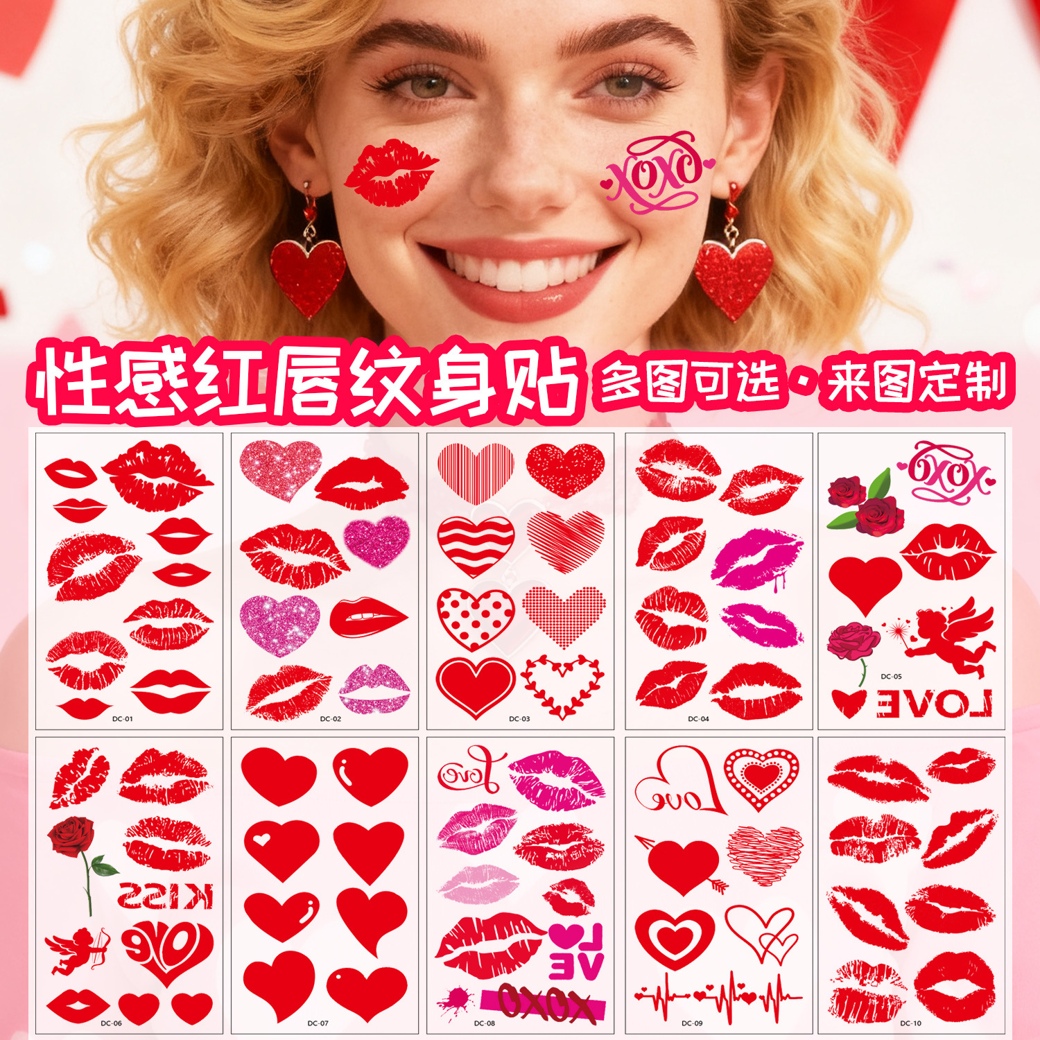 跨境新款情人节嘴唇纹身贴情侣唇印爱心七夕豹纹嘴唇kiss玫瑰贴纸