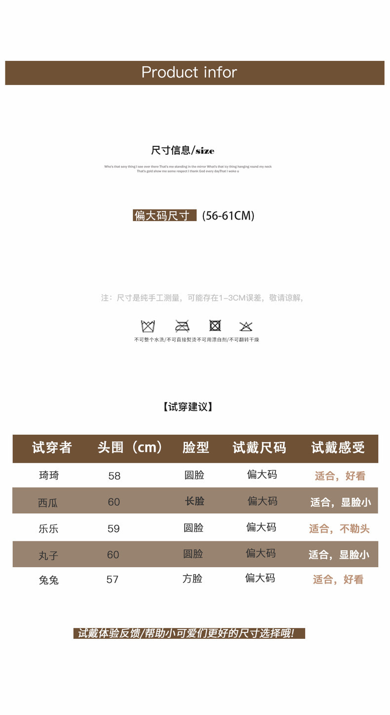 颜色 皮标熊--卡其,皮标熊--米白,皮标熊--咖啡,皮标熊--灰色,皮标熊--黑色,皮标熊--粉色,条纹--白色,条纹--黑色,条纹--卡其,金属标--白色,金属标--黑色,金属标--卡其,彩扣--米白,彩扣--黑色,彩扣-卡其,刺绣--米白,刺绣--黑色,刺绣--卡其,毛绒渔夫-米白,毛绒渔夫--黑色,毛绒渔夫--卡其,ST-米色,ST-黑色,ST-卡其,ST-粉色,暴力熊-卡其,暴力熊-米白,暴力熊-咖啡,暴力熊-黑色,发带-黑色