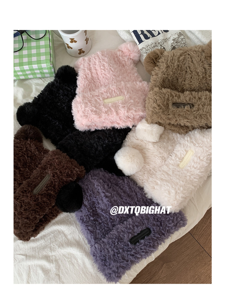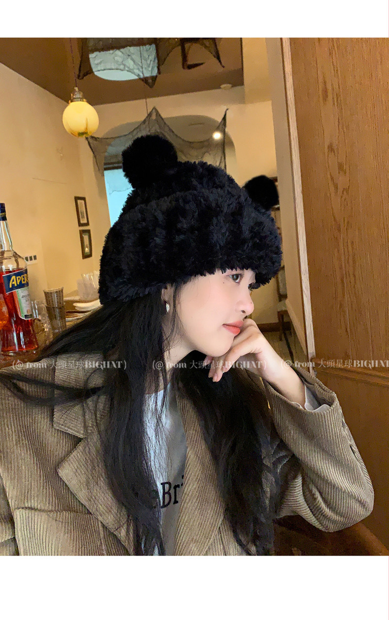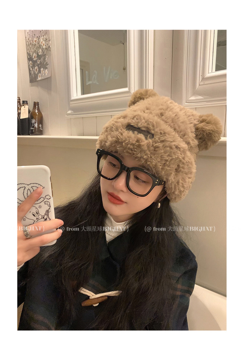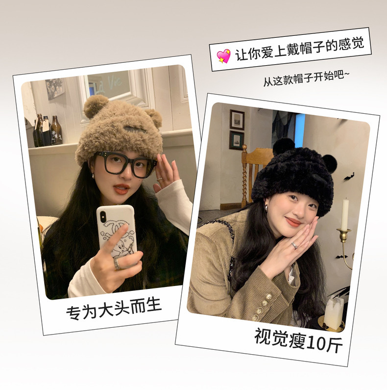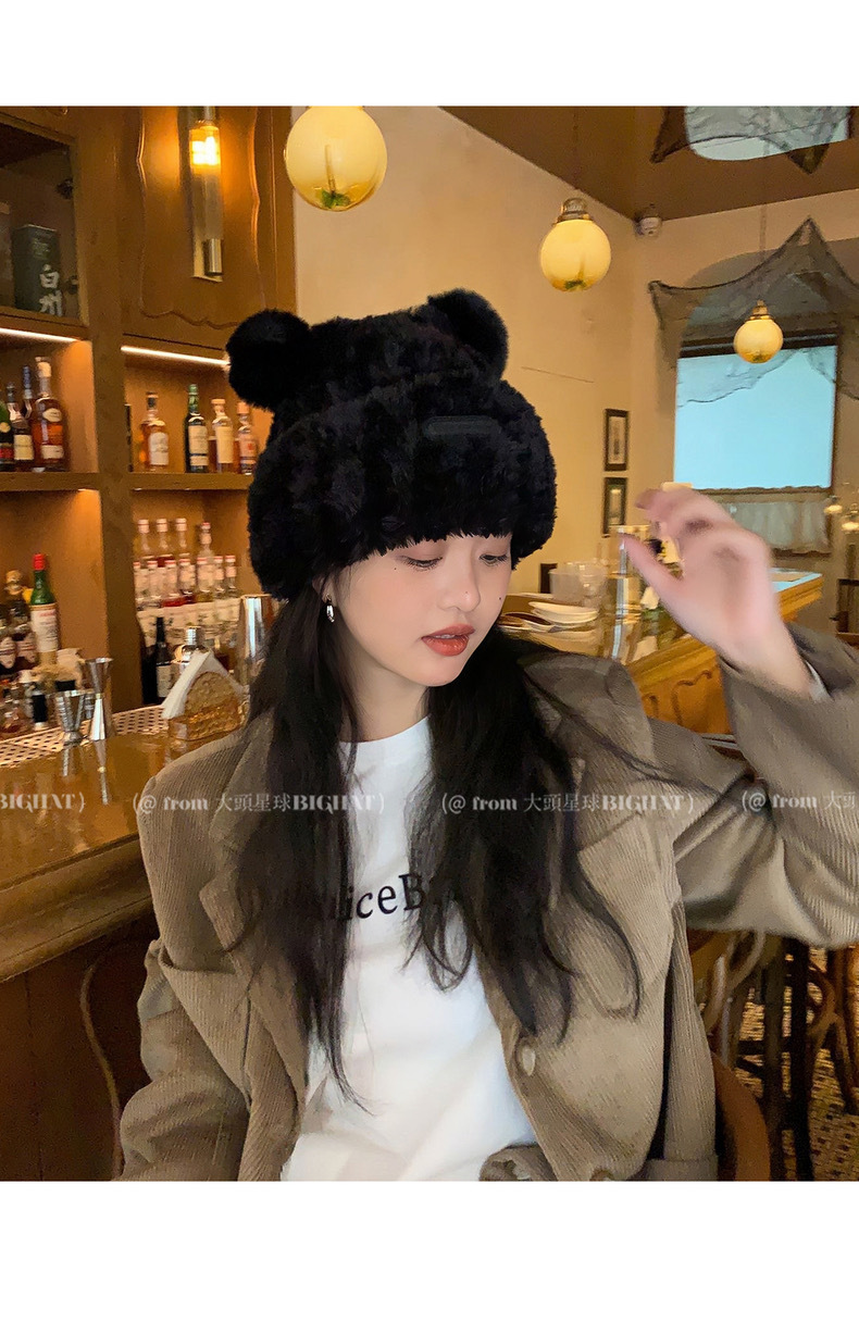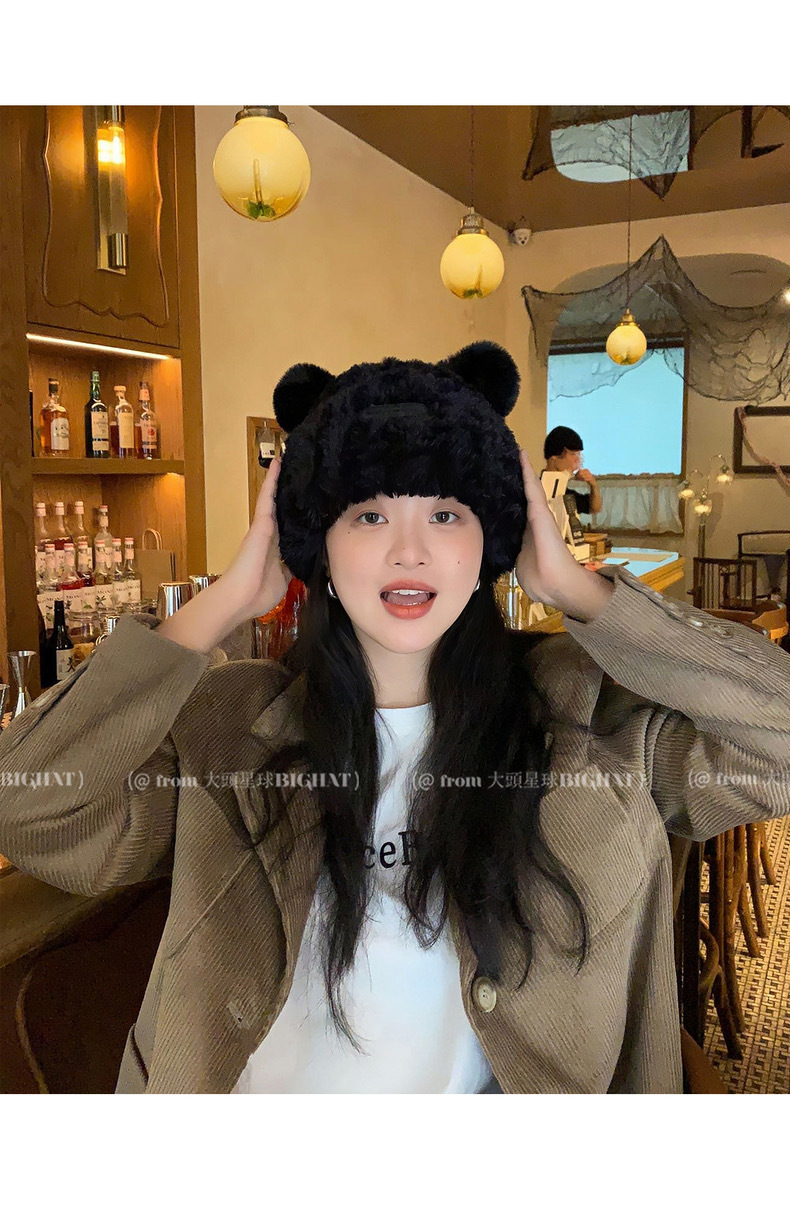 冬季网红新款毛绒女士帽韩版小熊耳朵保暖帽宽松时尚显脸小套头帽
