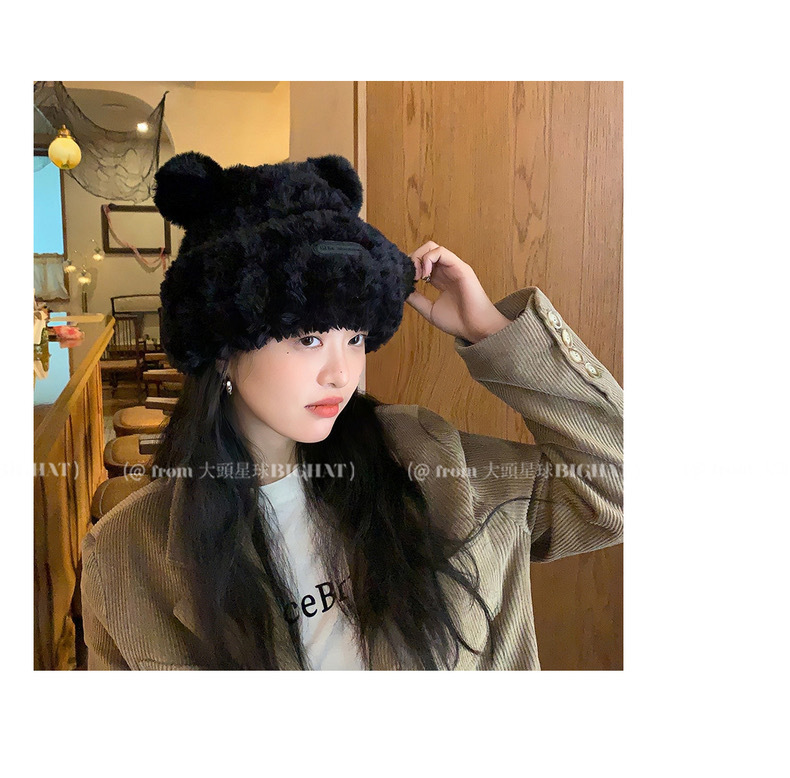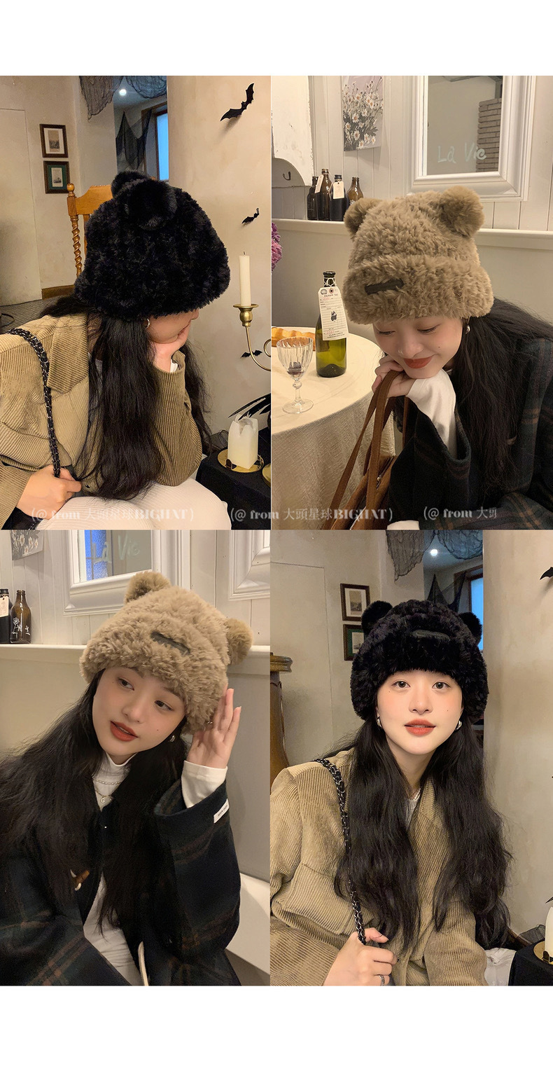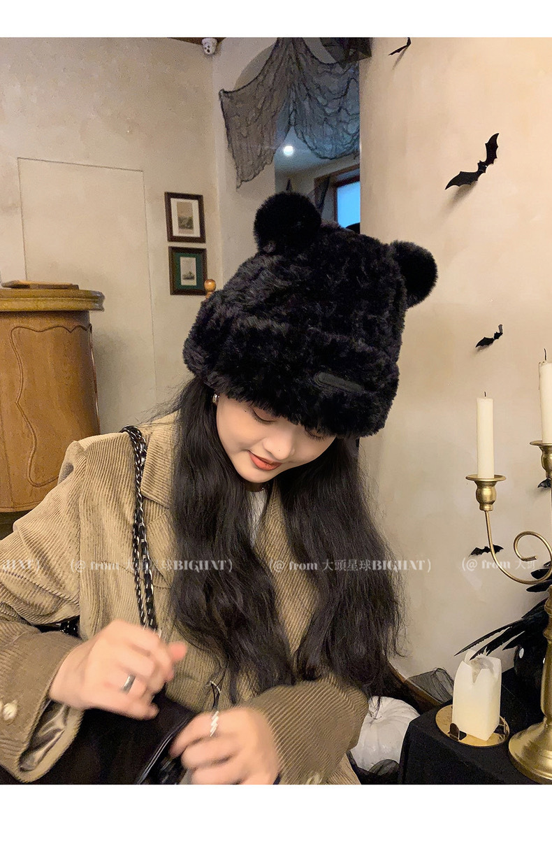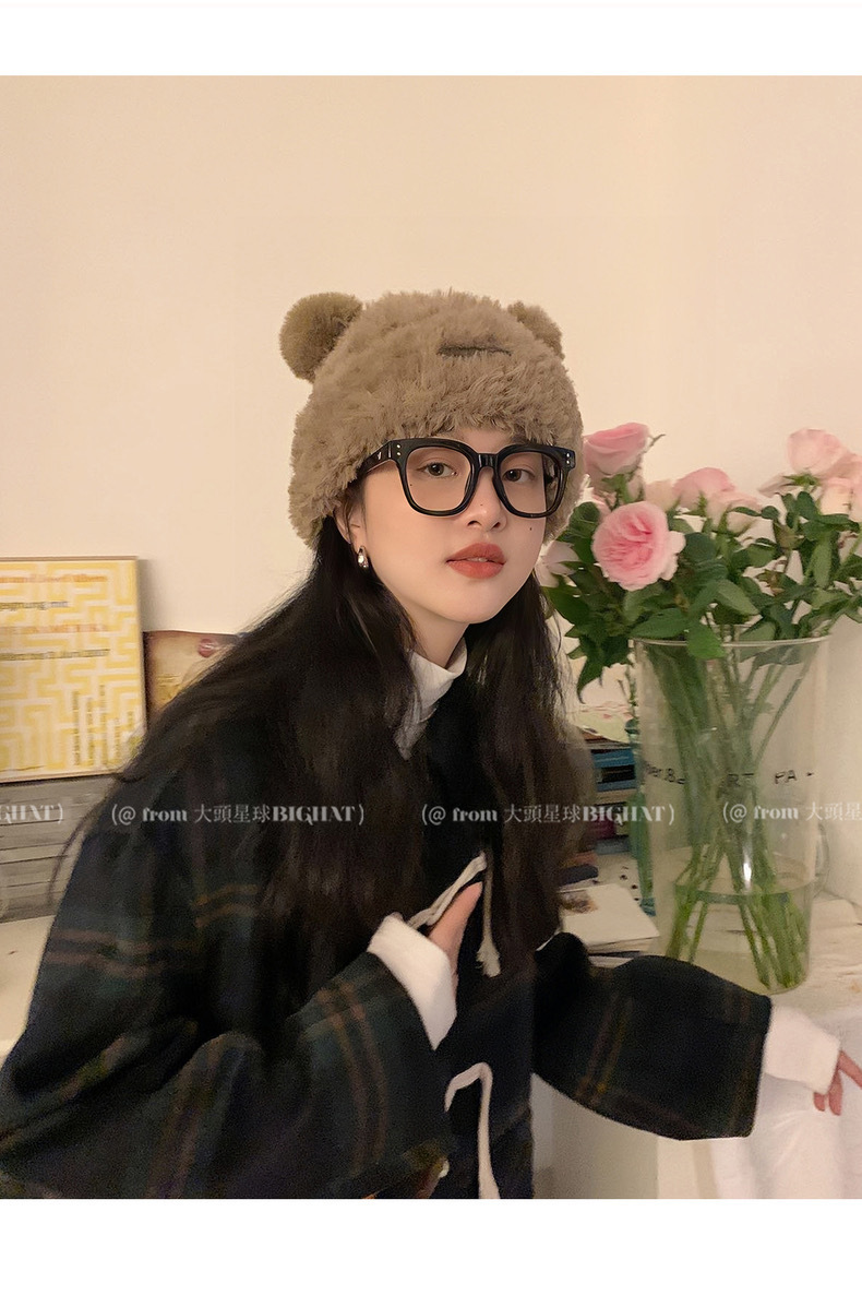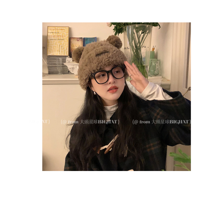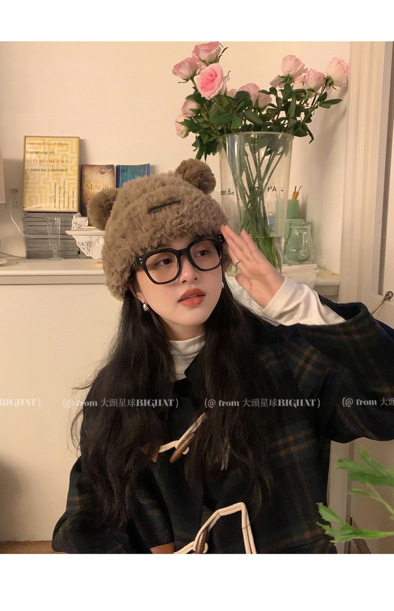 冬季网红新款毛绒女士帽韩版小熊耳朵保暖帽宽松时尚显脸小套头帽