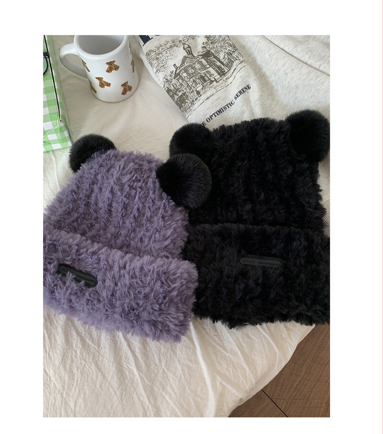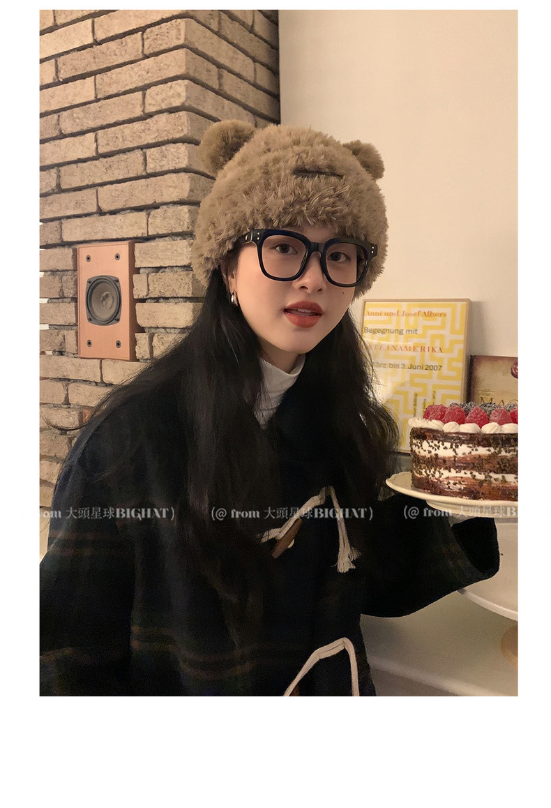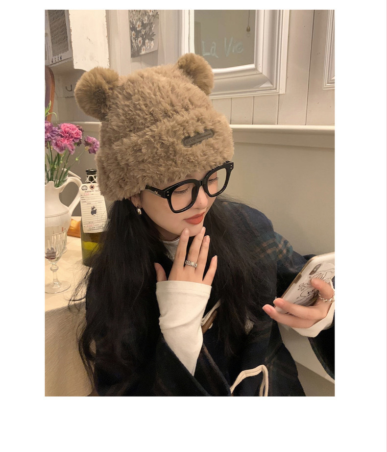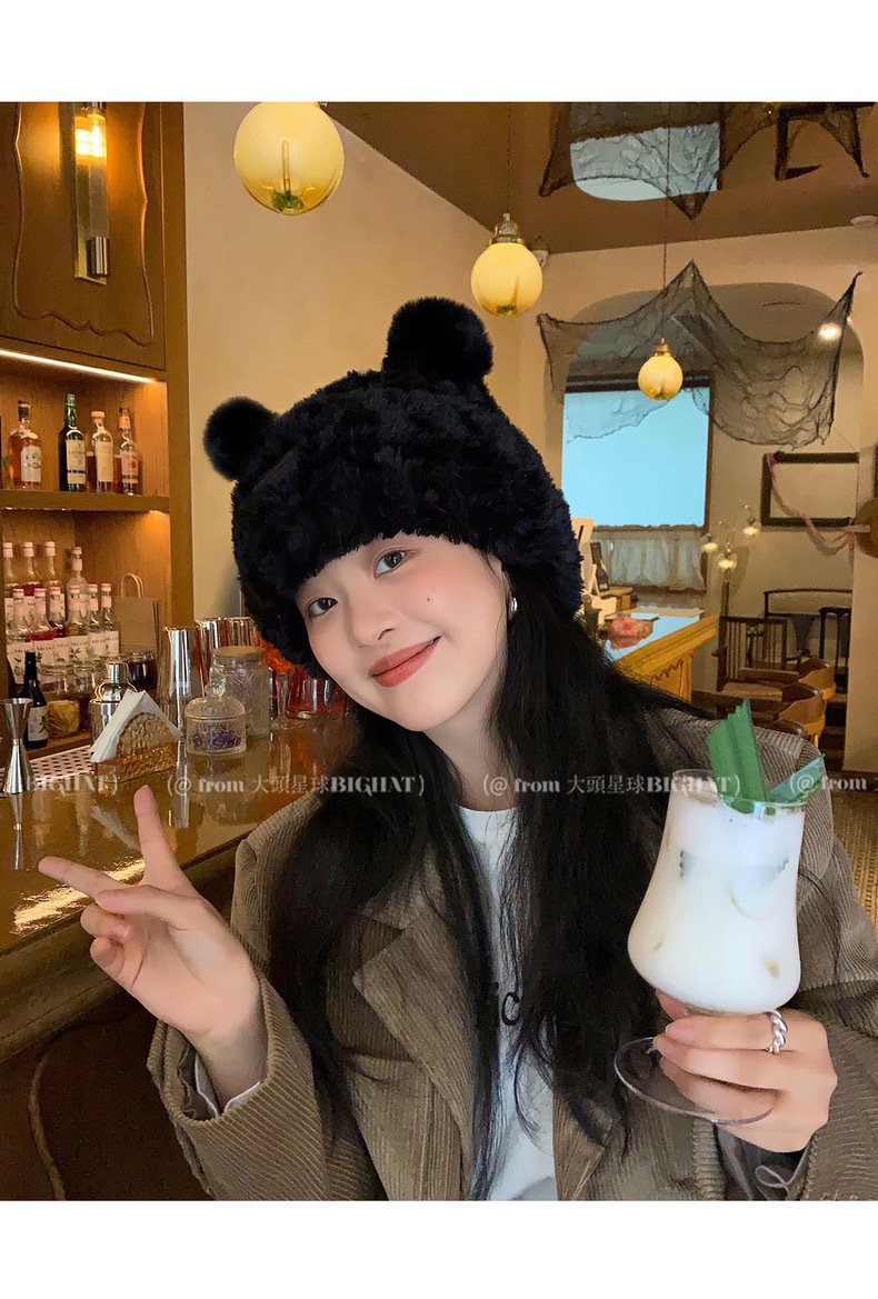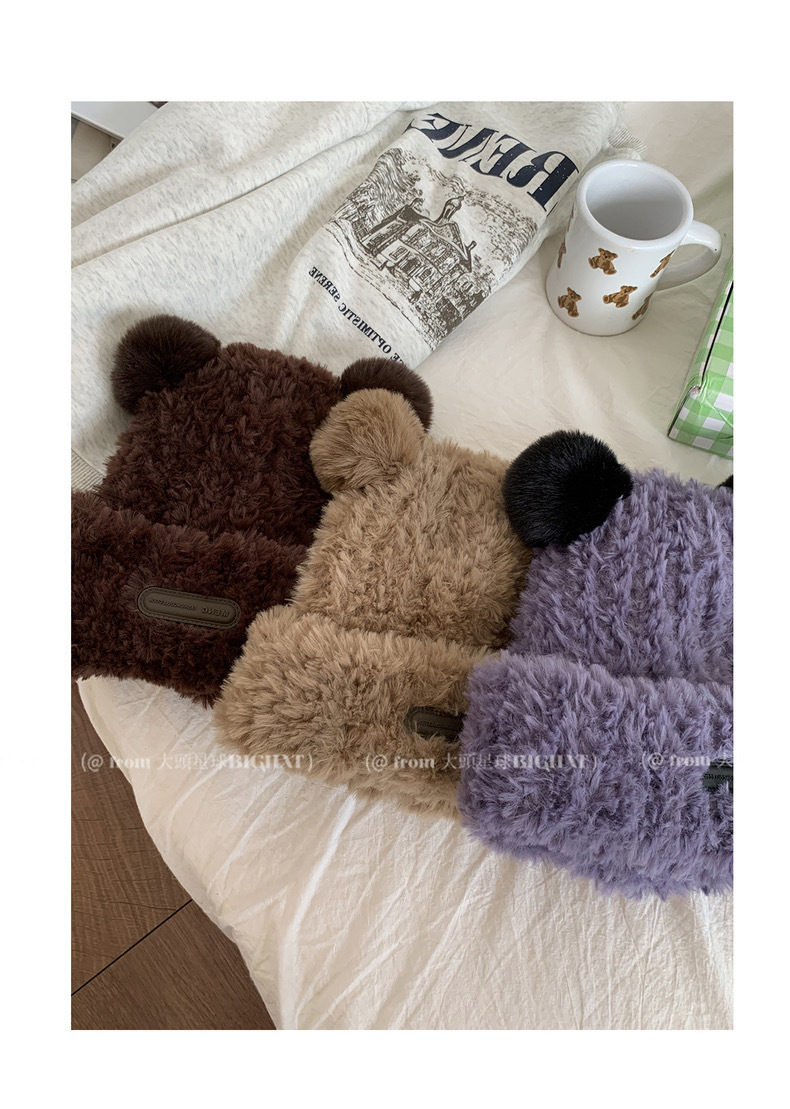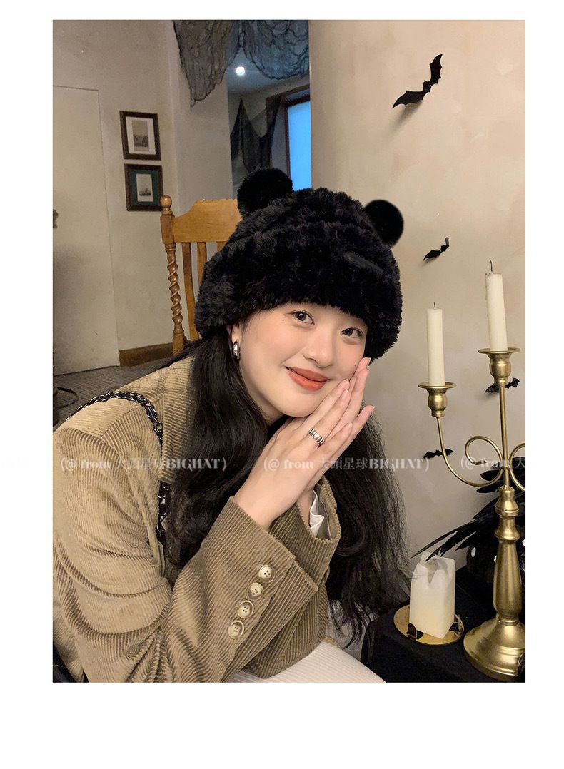 冬季网红新款毛绒女士帽韩版小熊耳朵保暖帽宽松时尚显脸小套头帽