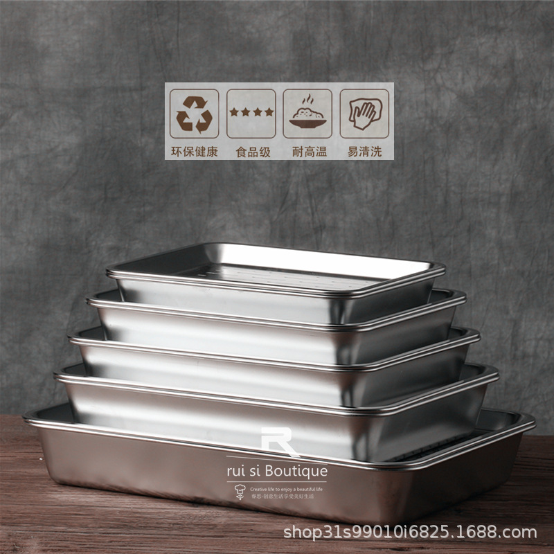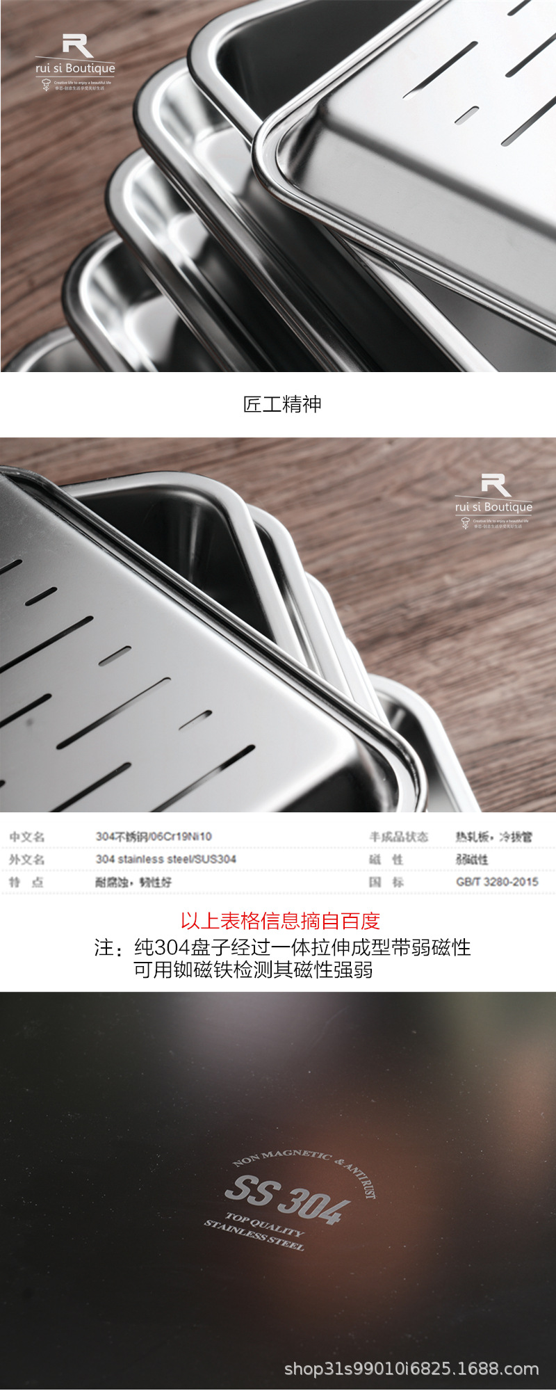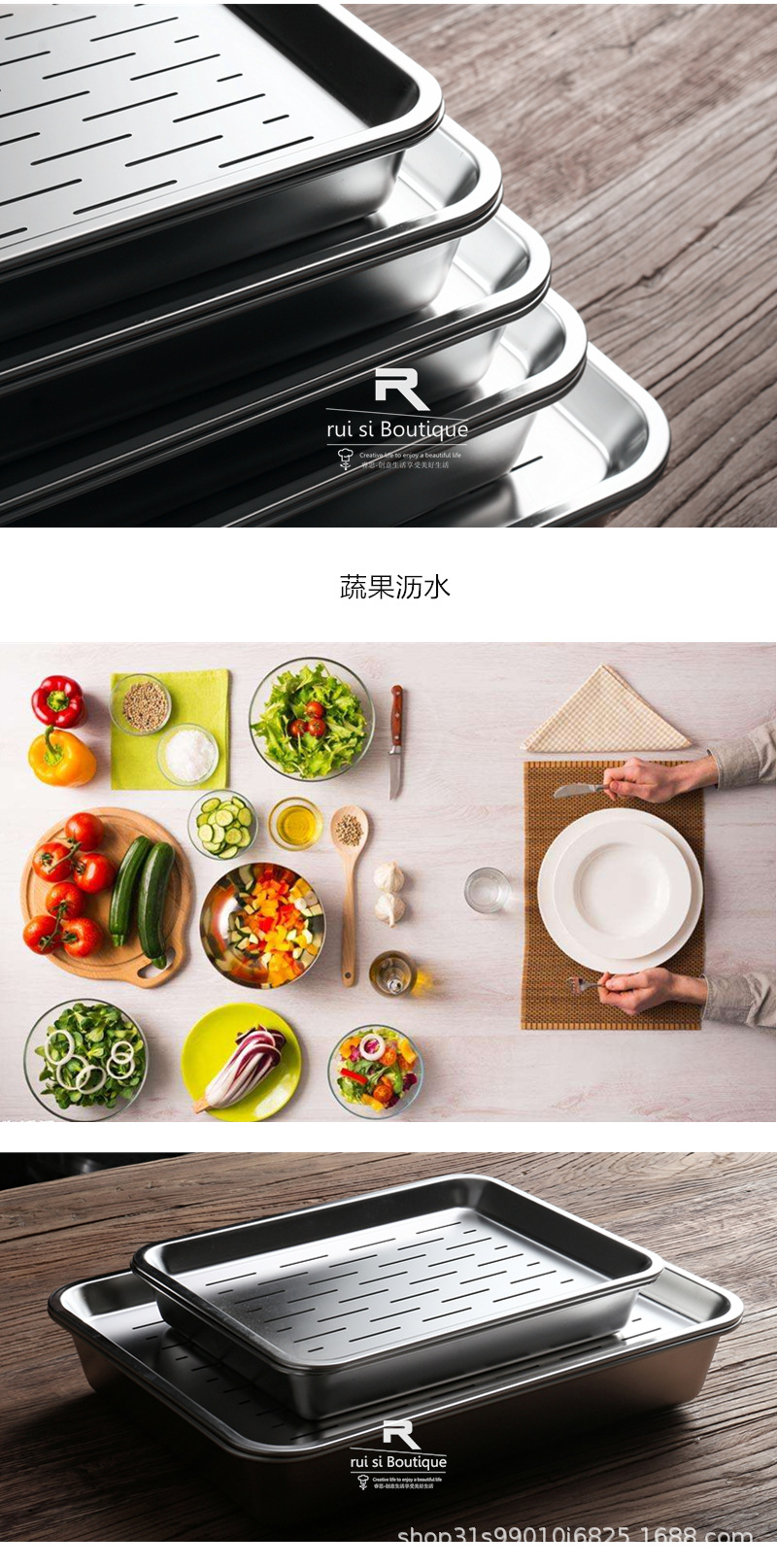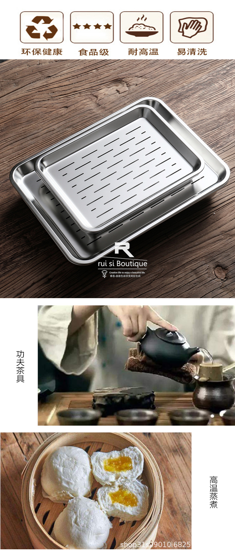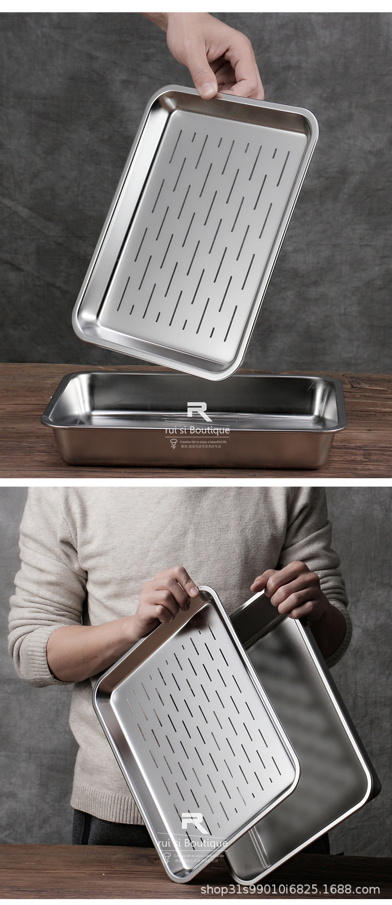 304不锈钢茶盘长方形放水杯托盘日式沥水控油漏盘饺子蒸盘简约孔