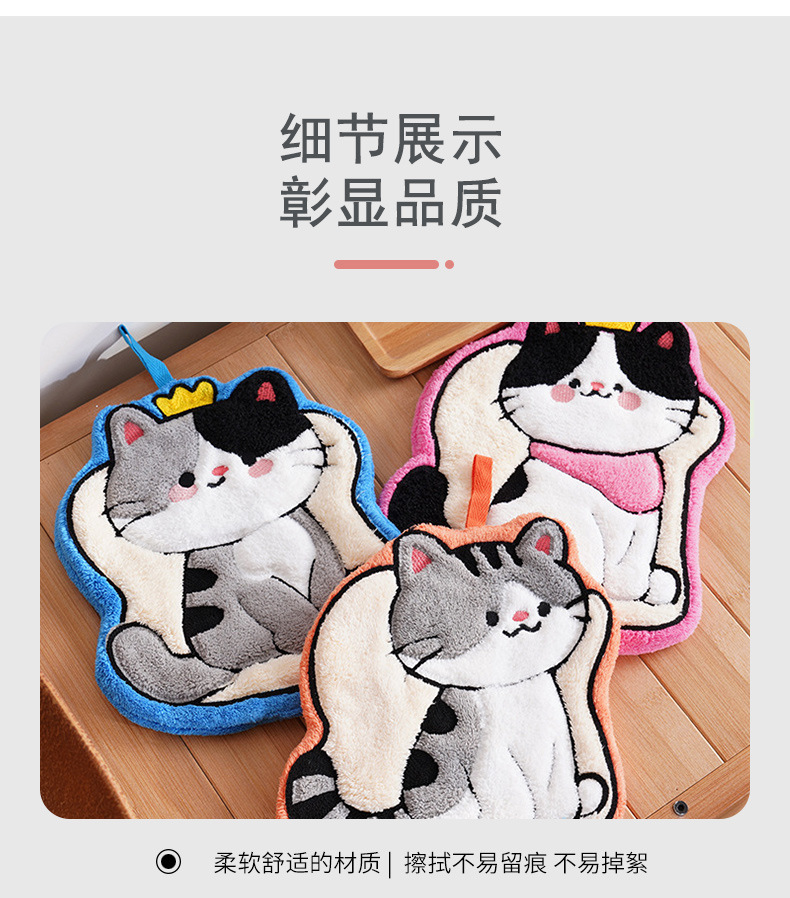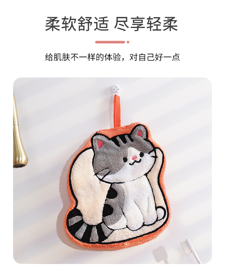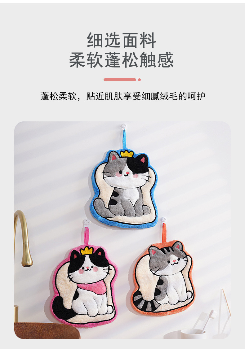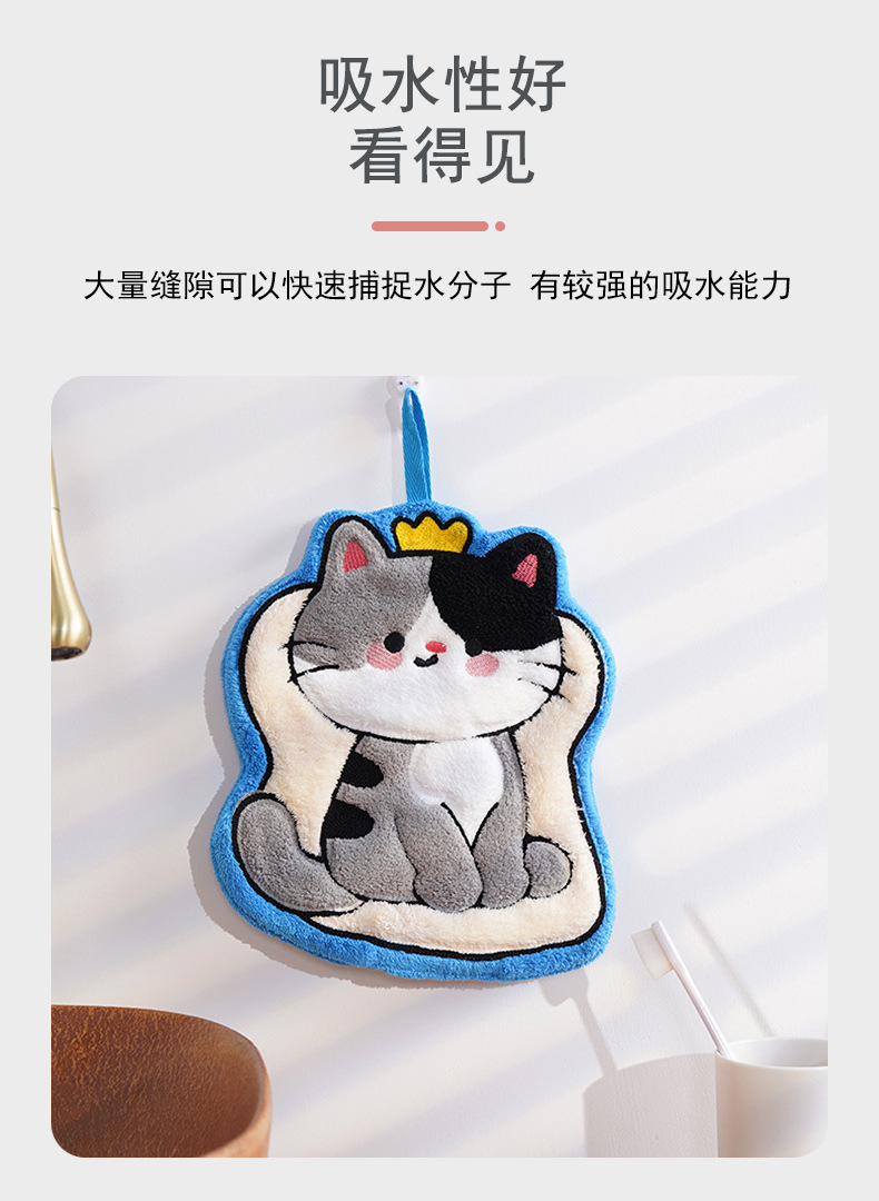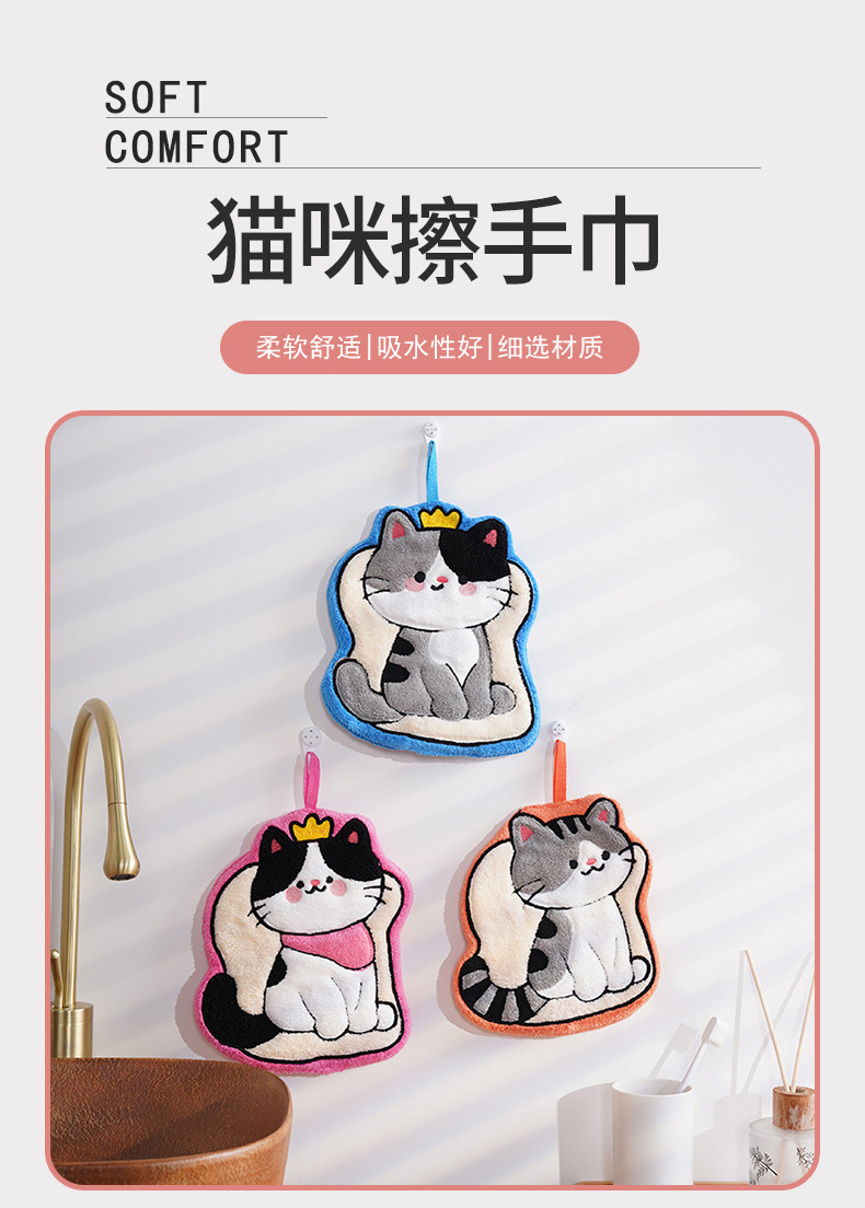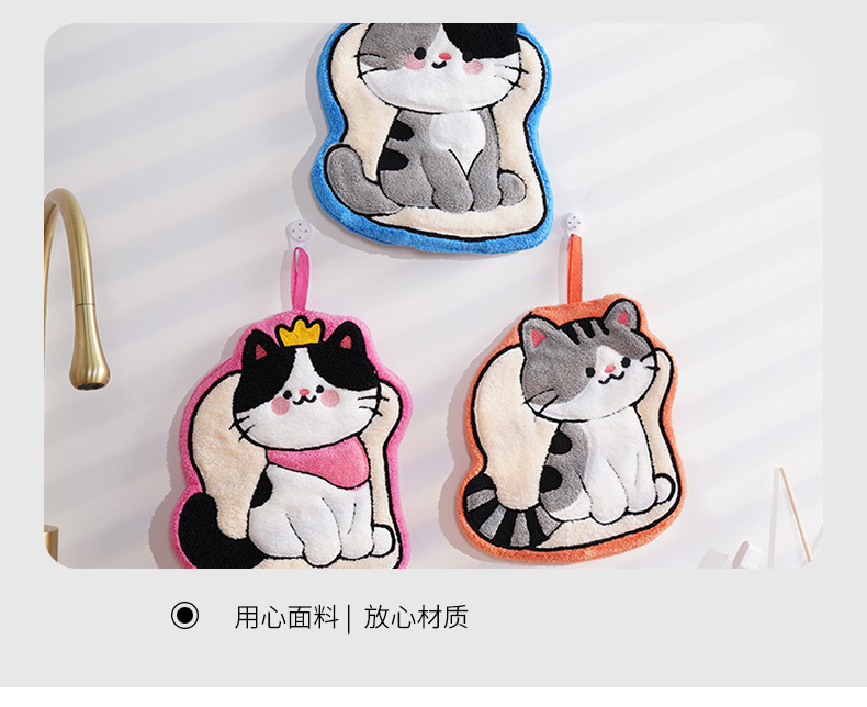 猫咪系列可爱擦手小毛巾卡通珊瑚绒挂式厨房擦手帕浴室家用擦手巾