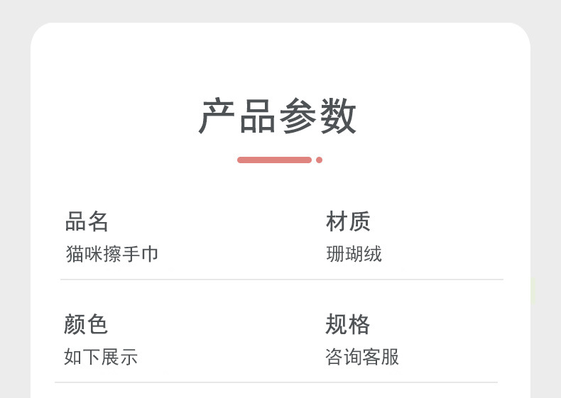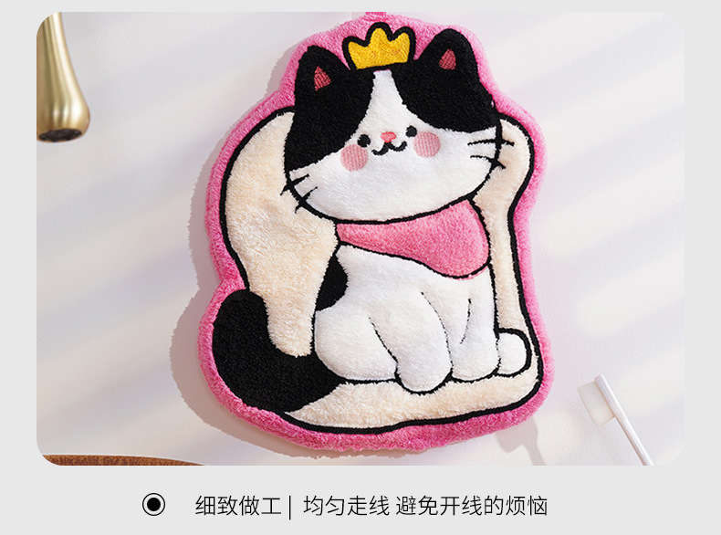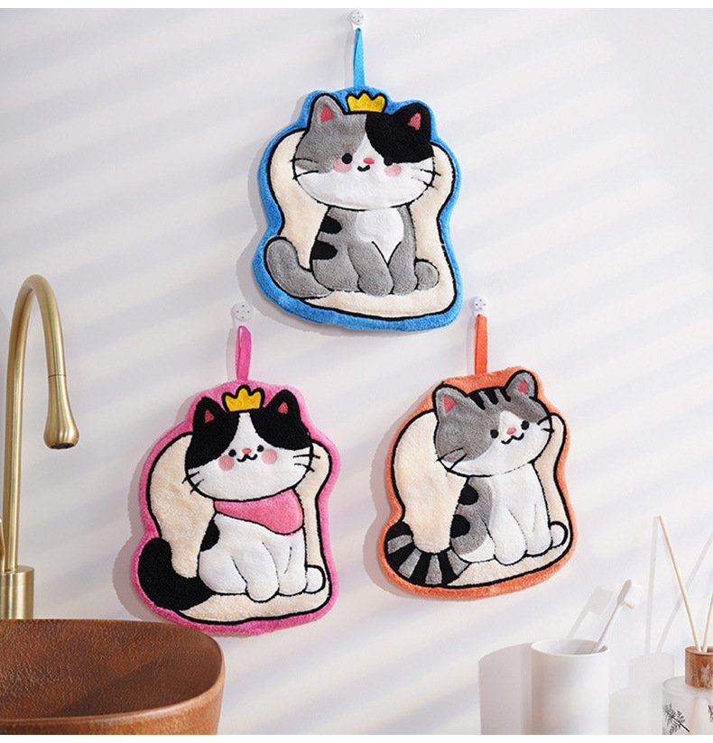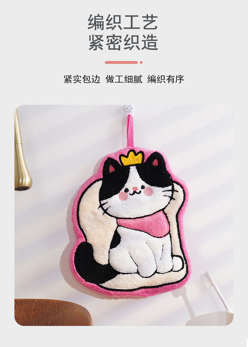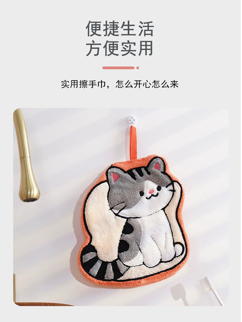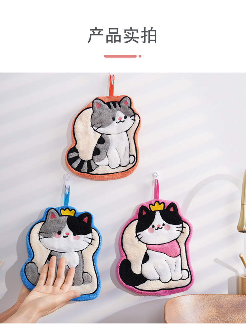 猫咪系列可爱擦手小毛巾卡通珊瑚绒挂式厨房擦手帕浴室家用擦手巾