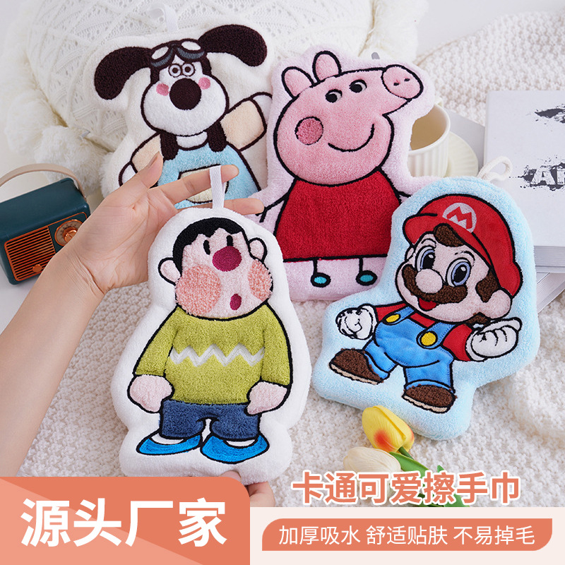新年款卡通挂式擦手巾可爱加厚吸水珊瑚绒小毛巾厨房卫生间抹布