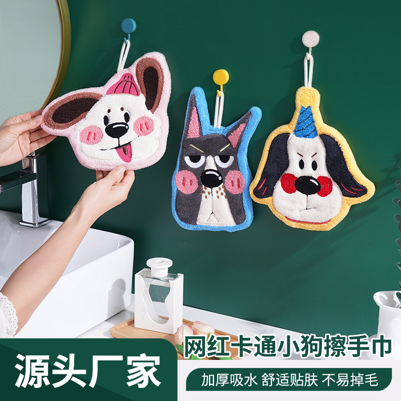网红卡通小狗擦手巾珊瑚绒擦手巾挂式喜铺礼品伴手礼幼儿园小毛巾