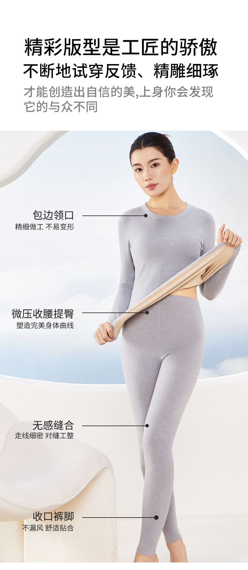 秋冬新作 モダールカシミヤシルク 女性用保温下着 シルクのような発熱美体スリムフィット 秋服・秋パンツセット