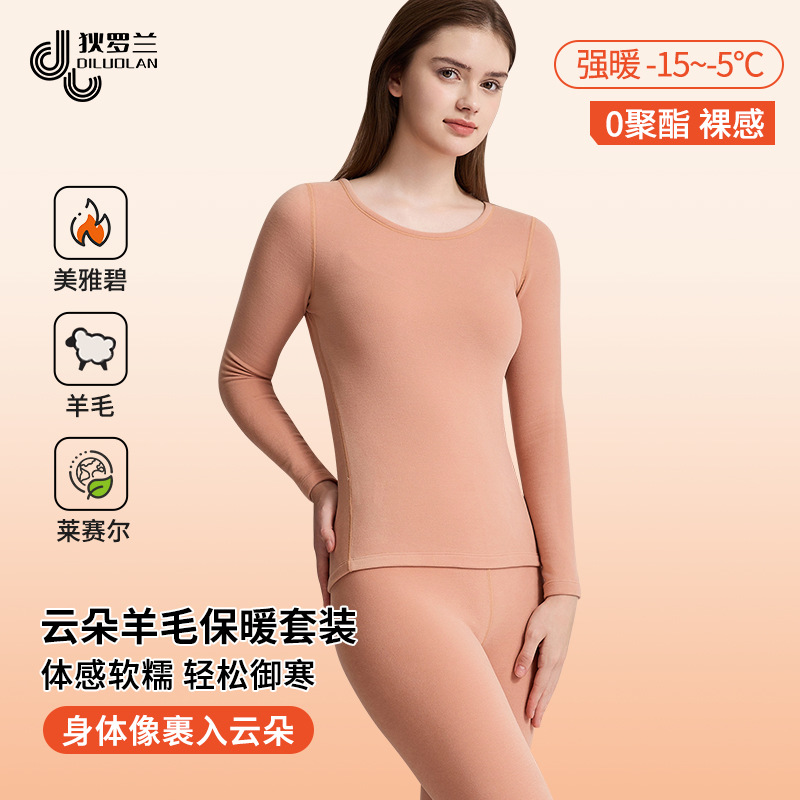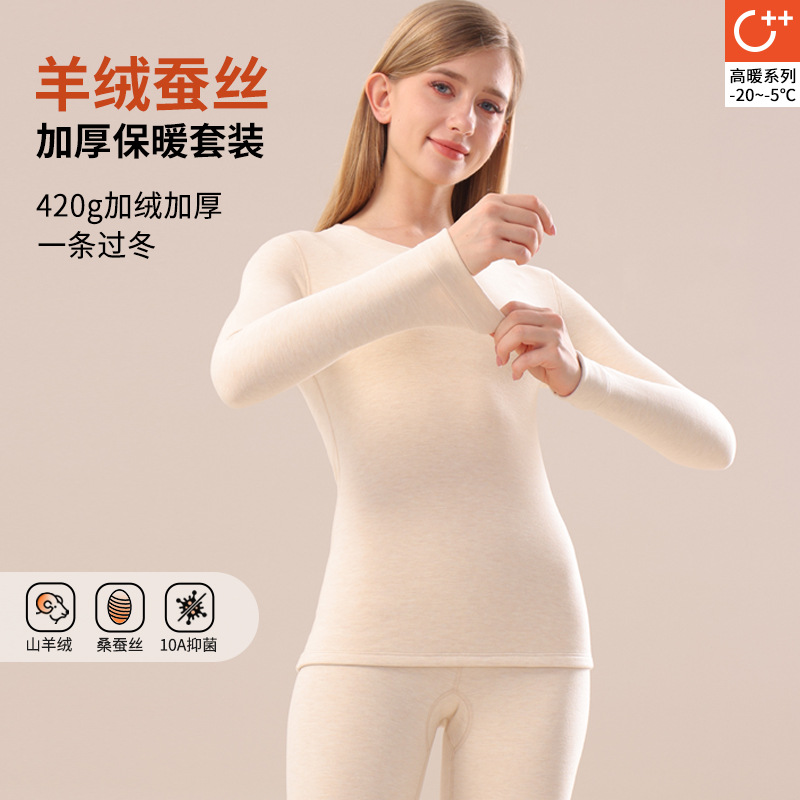 女士保暖内衣套装绸丽羊绒蚕丝秋衣秋裤加绒加厚抗菌包边打底内衣