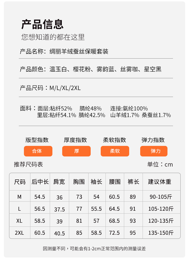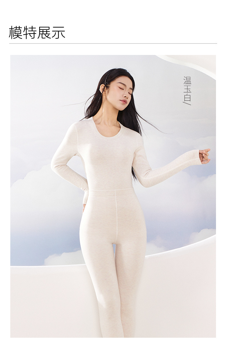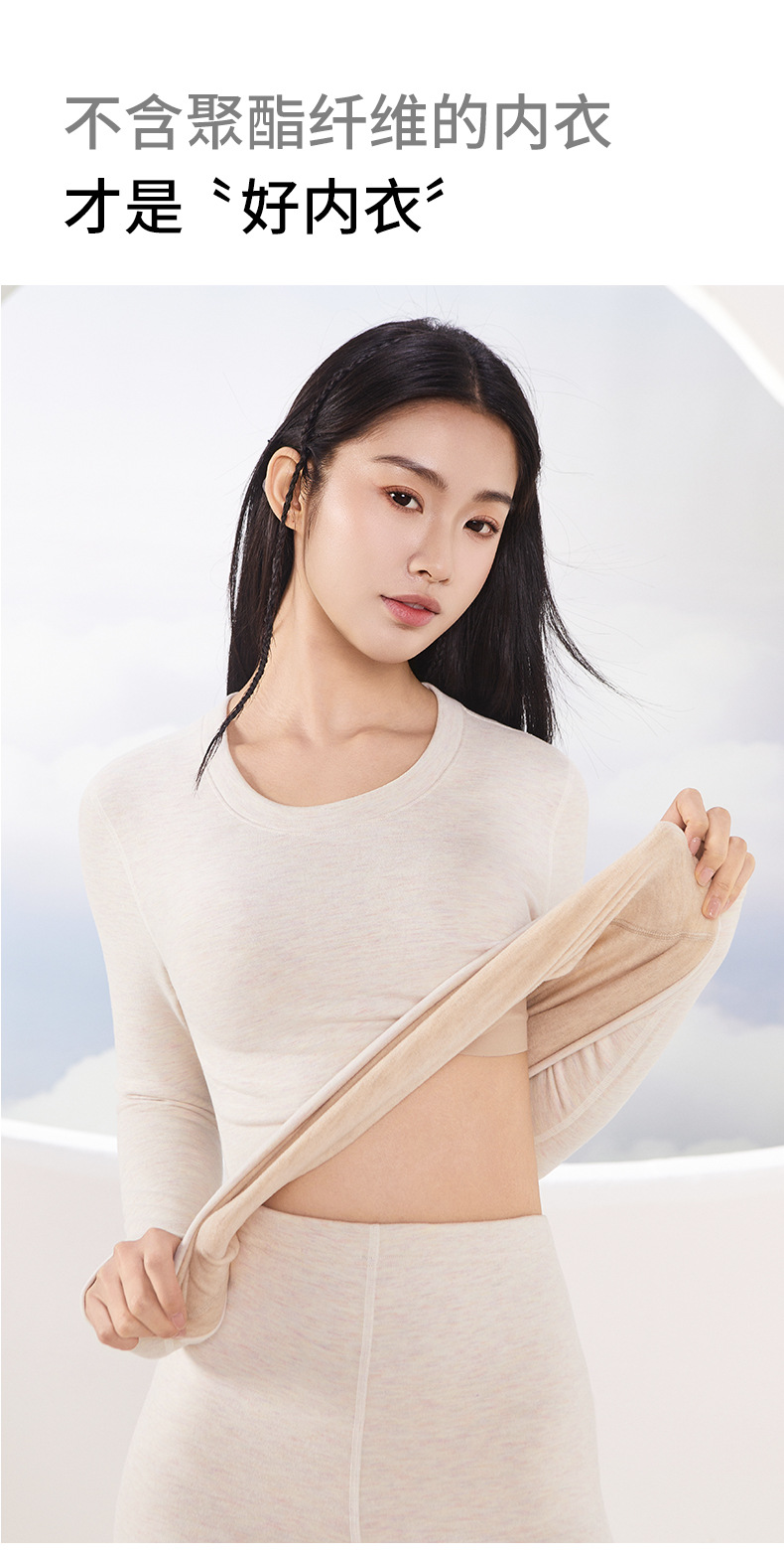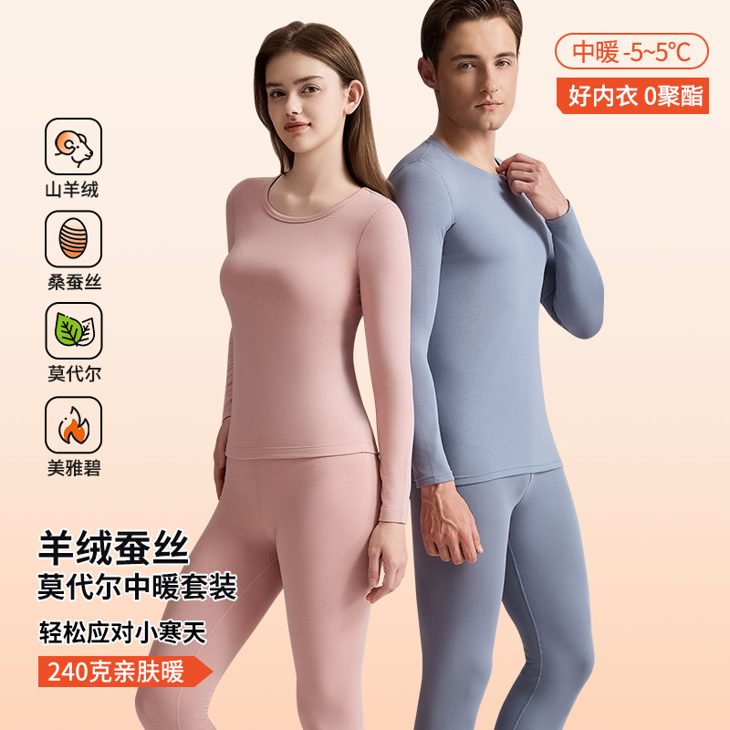莫代尔羊绒蚕丝圆领保暖内衣男女加厚秋衣秋裤套装美雅碧轻暖衣冬