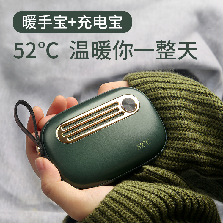 新款M8化妆镜暖手宝充电宝高清数显二档调温自带线大容量送礼好物