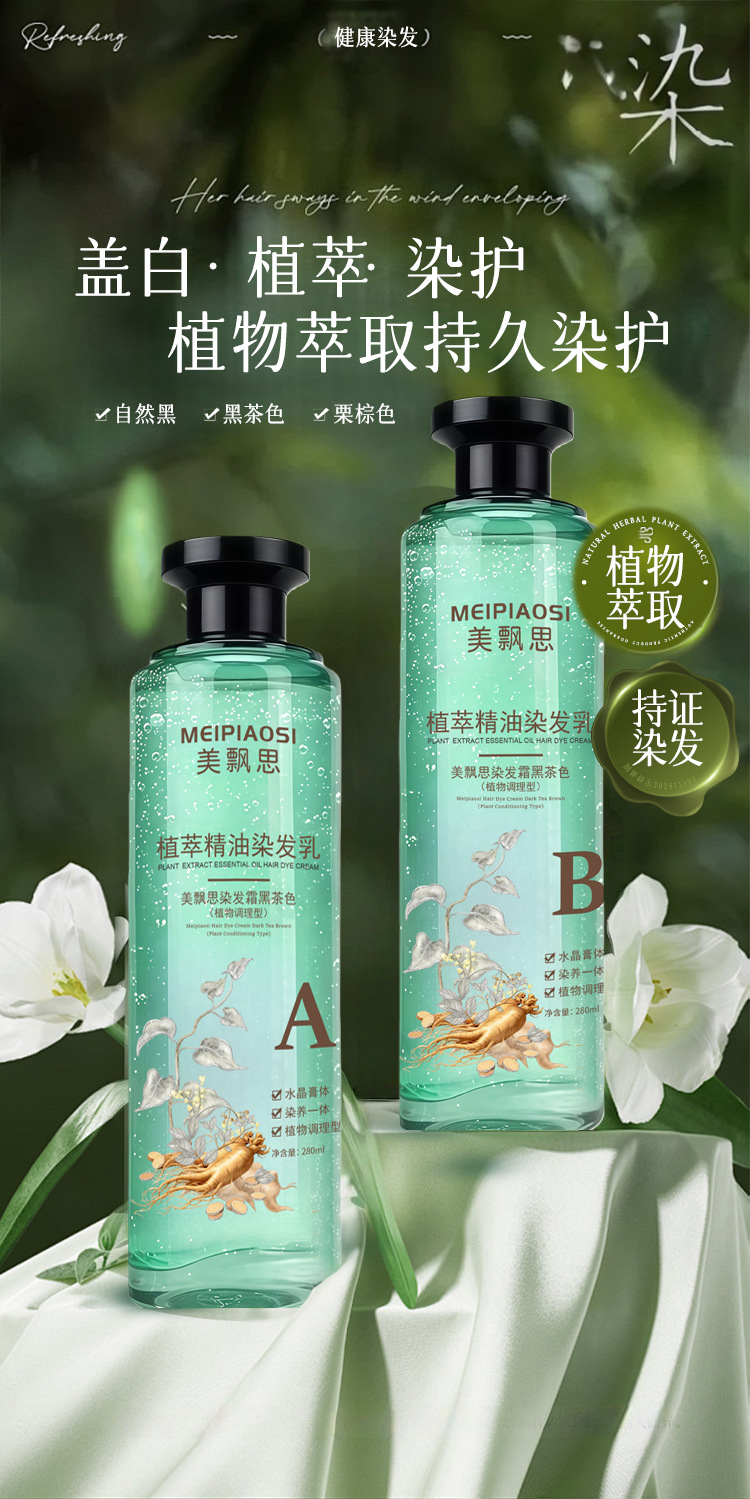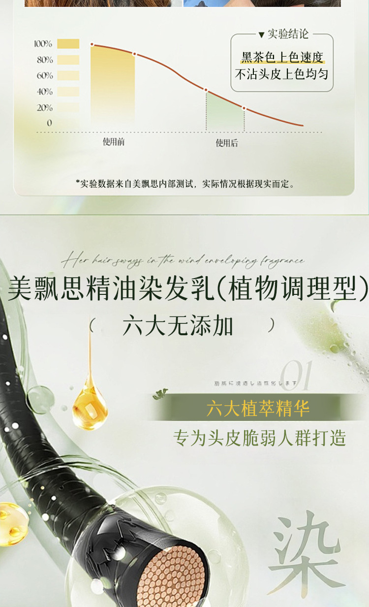 美飘思单剂苗染染发膏植萃染膏植物配方无双氧不刺激不然皮肤染发