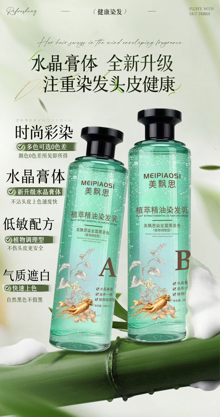 抖音爆款美飘思植萃精油染发乳水晶膏体透明精粹植物染发膏染发剂