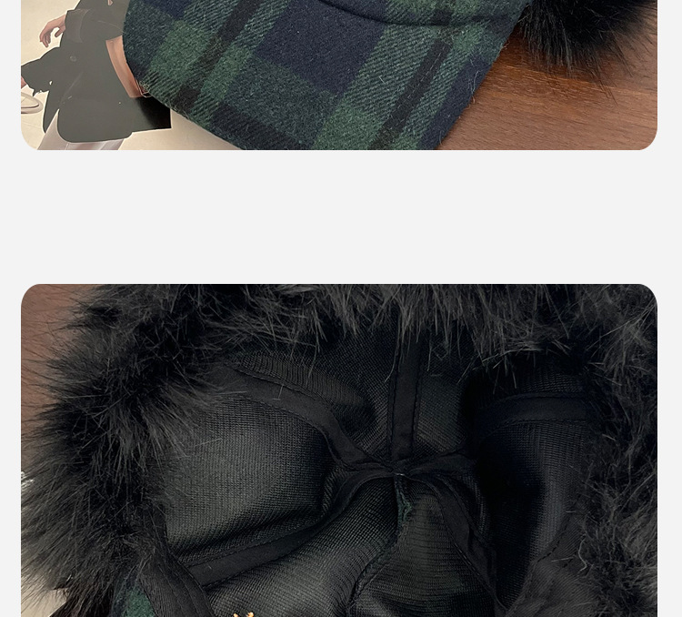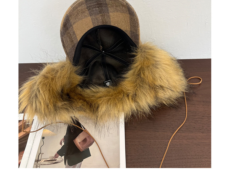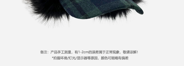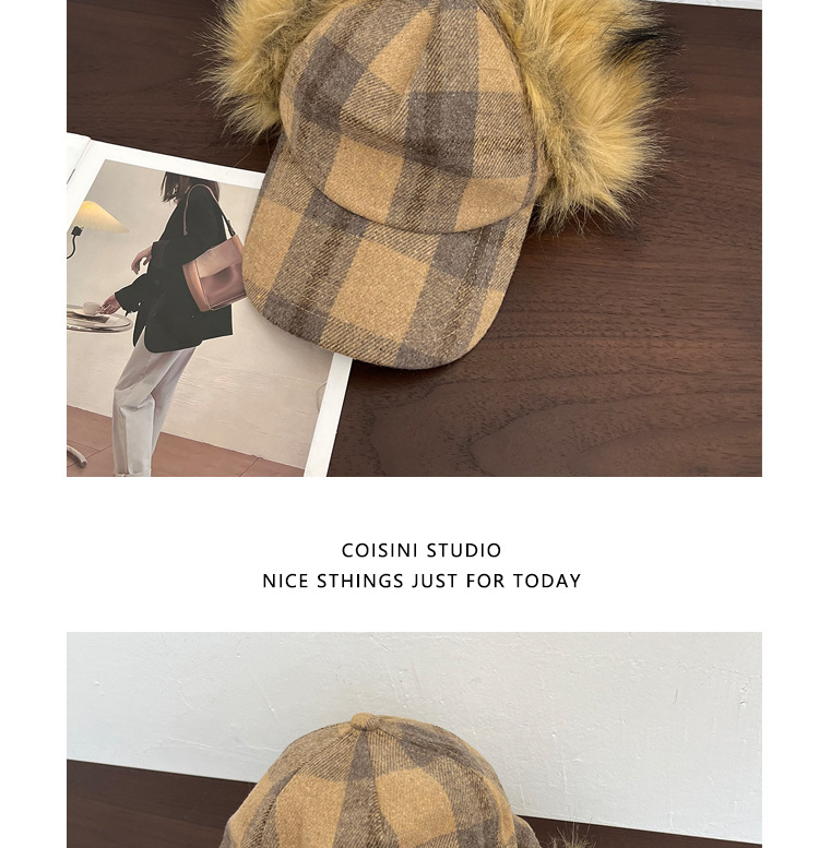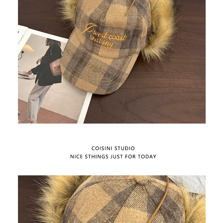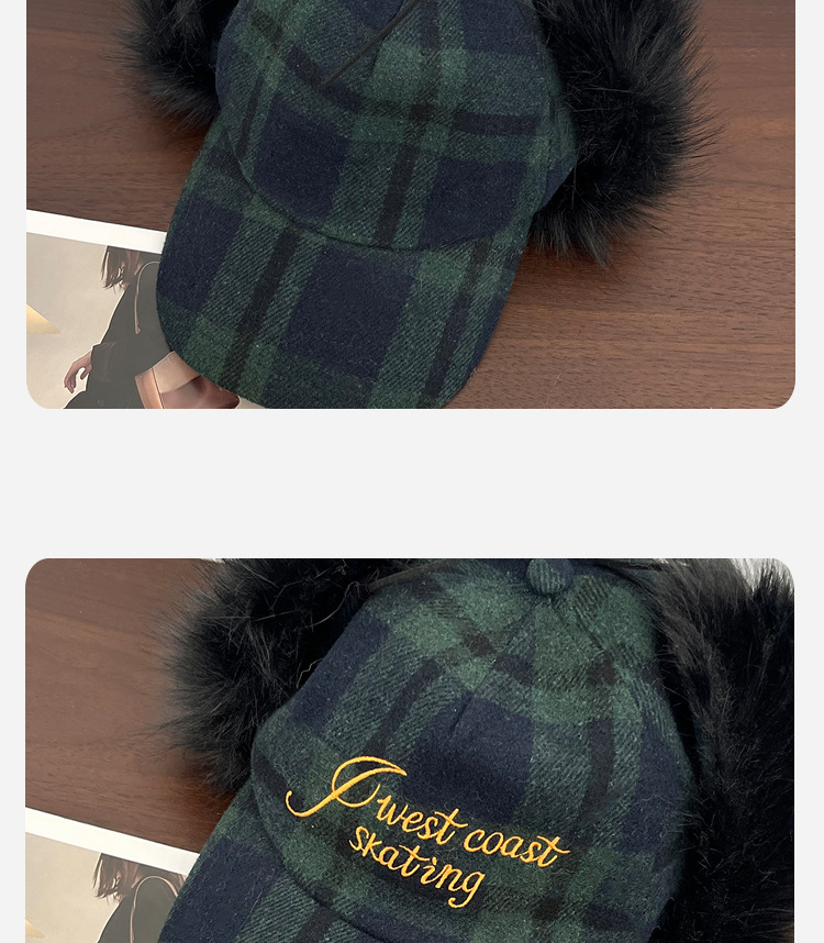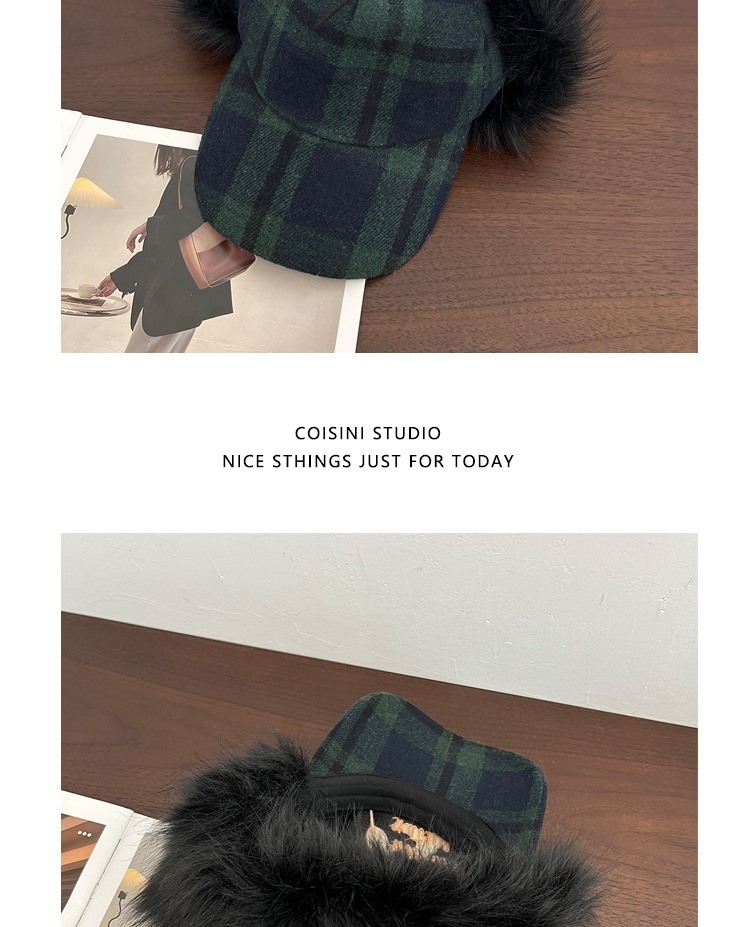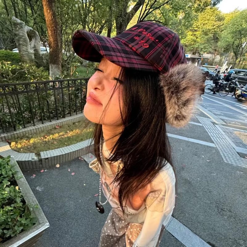 韩国ins格纹毛茸茸护耳鸭舌帽子女生保暖百搭显脸小时尚棒球帽潮