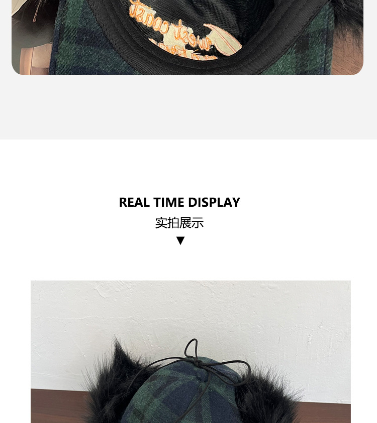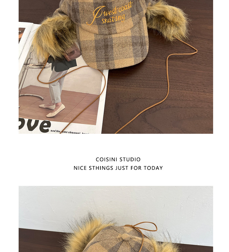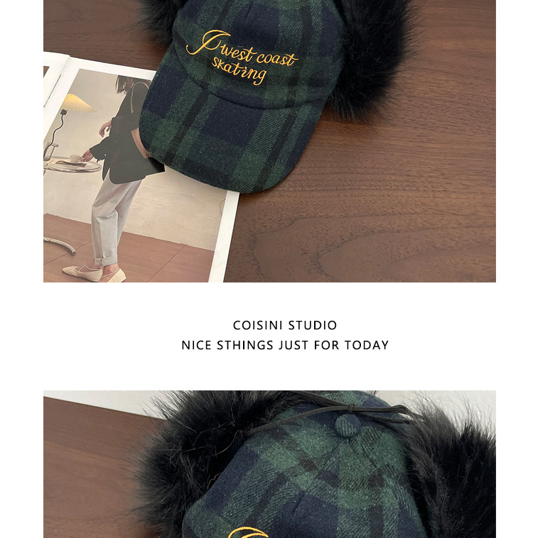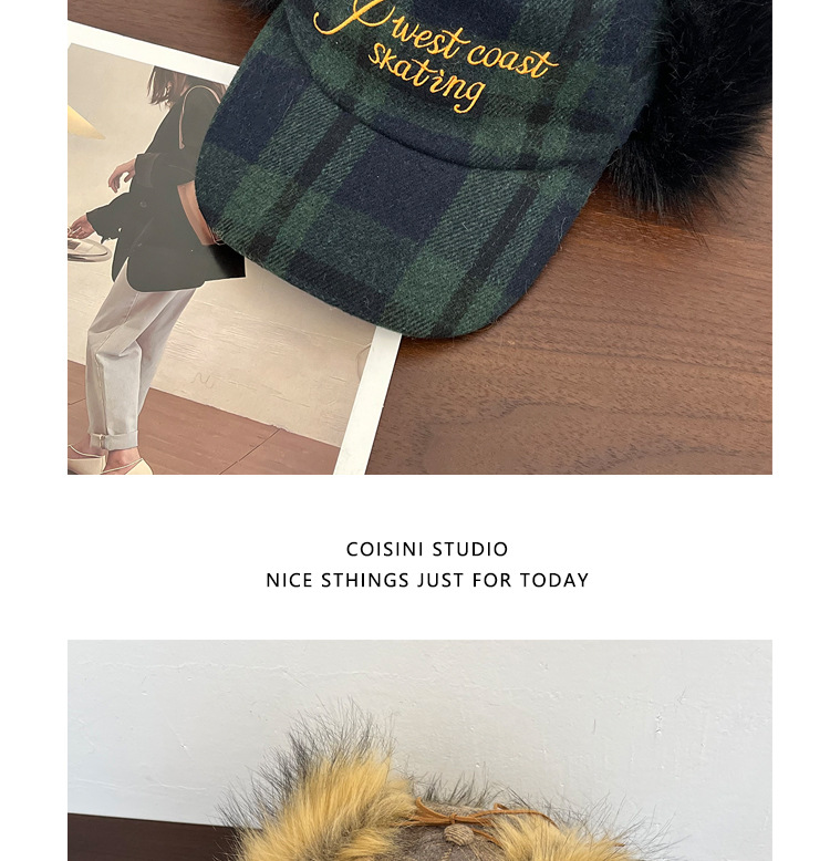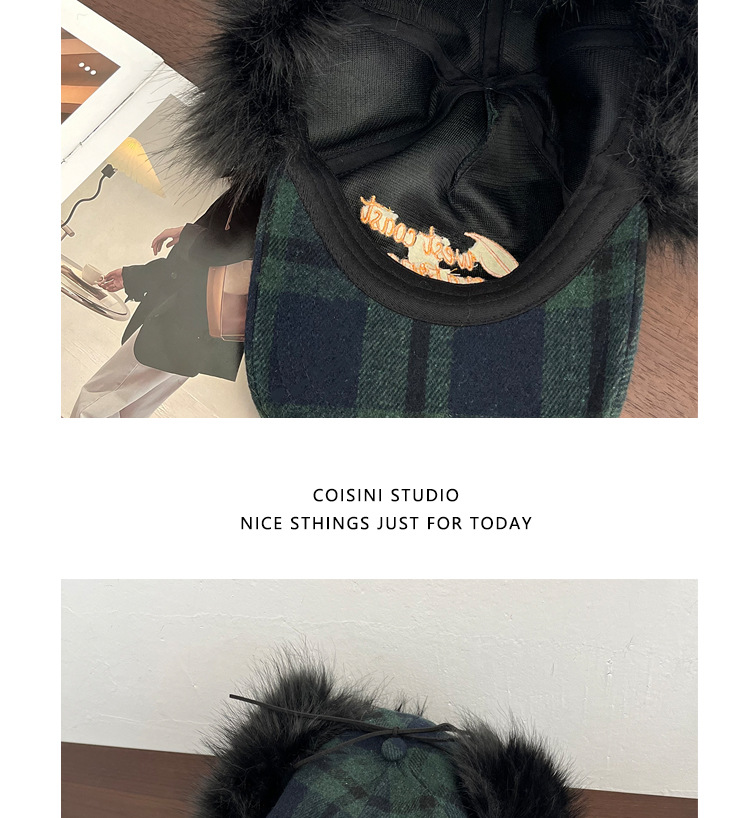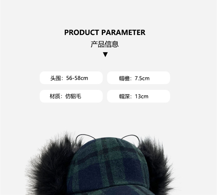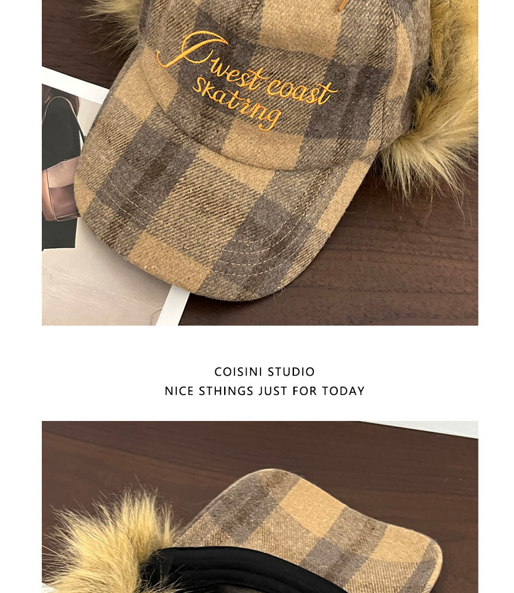 韩国ins格纹毛茸茸护耳鸭舌帽子女生保暖百搭显脸小时尚棒球帽潮