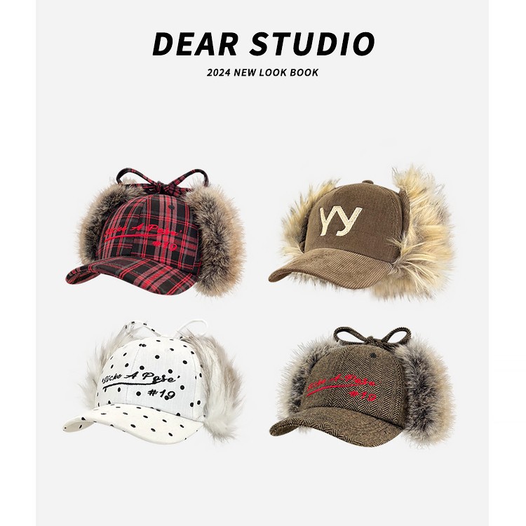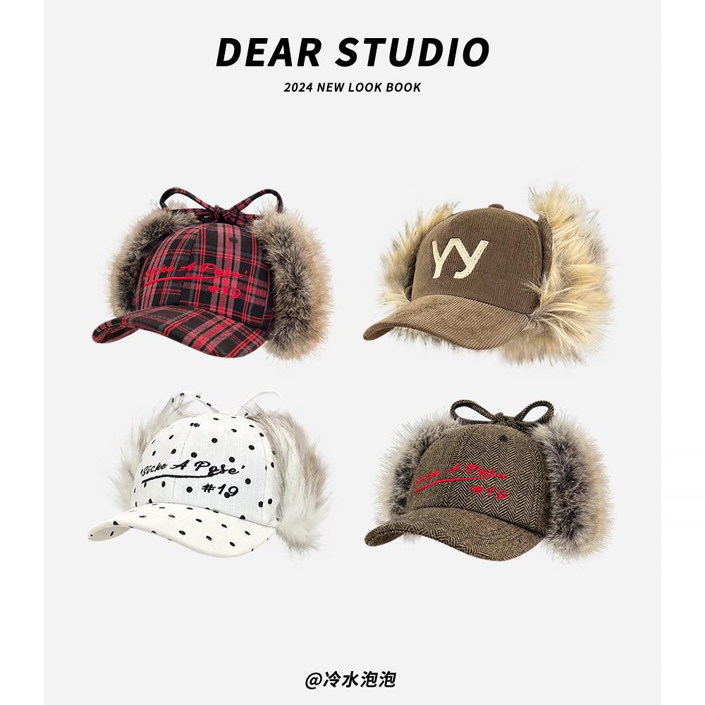 美式复古系毛绒护耳棒球帽女秋冬款鸭舌帽街头辣妹雷锋帽百搭出片