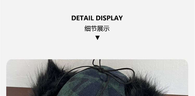 波点毛绒护耳鸭舌帽女秋冬保暖显脸小大头围百搭小众可爱雷锋帽子