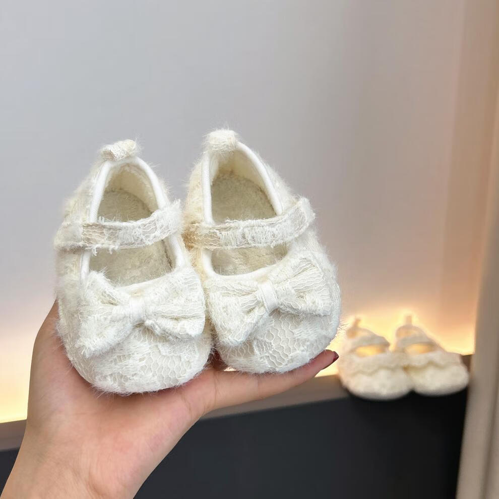 秋冬季新款婴儿鞋蕾丝花边毛绒防滑韩版公主鞋女宝宝软底学步鞋