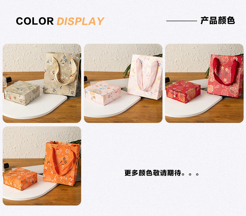 规格型号 红色;抽屉盒9.5*9.5*4cm,红色;手提袋12*15*6cm,红色;抽屉盒+手提袋,橙色;抽屉盒9.5*9.5*4cm,橙色;手提袋12*15*6cm,橙色;抽屉盒+手提袋,粉色;抽屉盒9.5*9.5*4cm,粉色;手提袋12*15*6cm,粉色;抽屉盒+手提袋,米黄色;抽屉盒9.5*9.5*4cm,米黄色;手提袋12*15*6cm,米黄色;抽屉盒+手提袋
