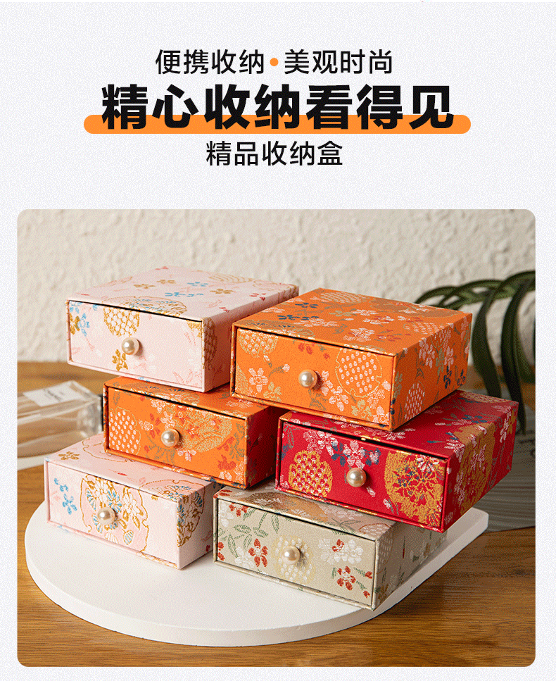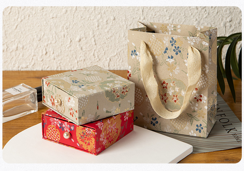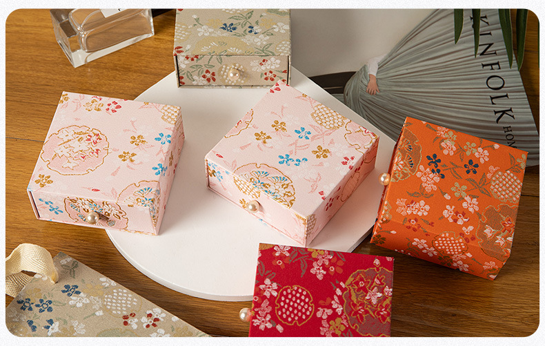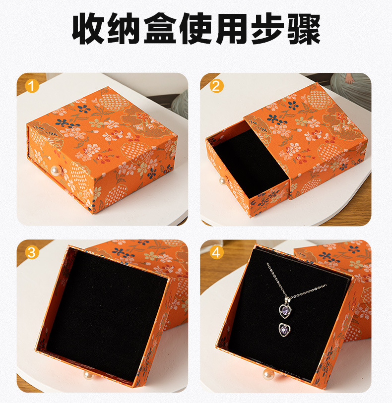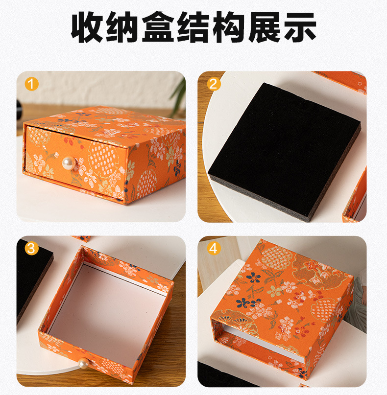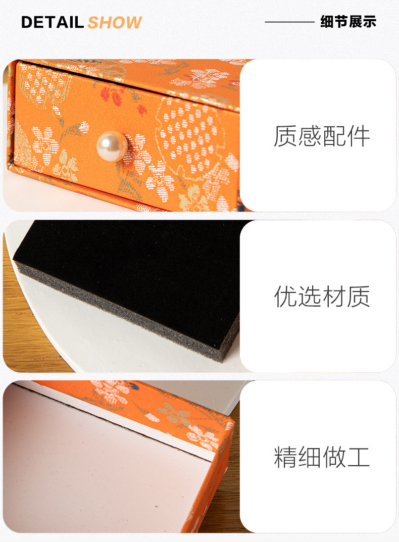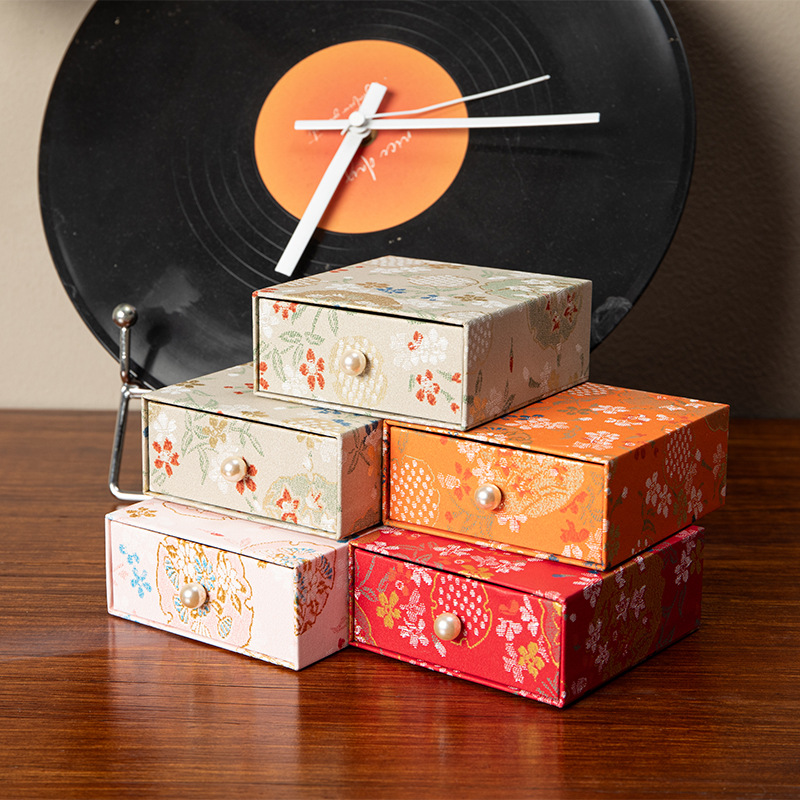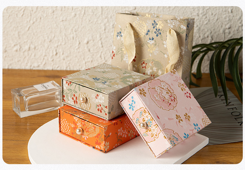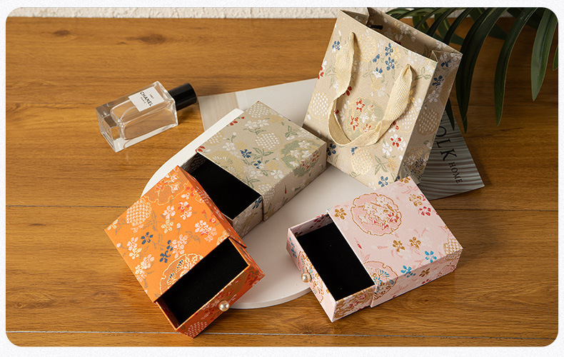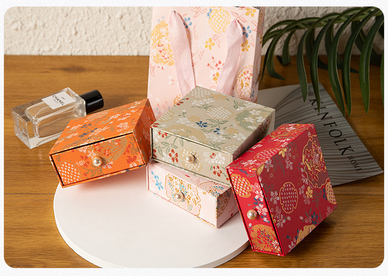 珠宝首饰抽屉包装盒复古风印花饰品收纳盒抽拉展示盒香包香囊礼盒