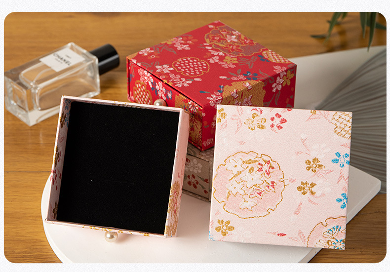 国风小花抽屉式首饰包装盒珍珠扣古风戒指耳钉项链盒抽拉饰品盒子