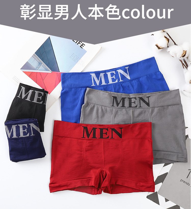 内裤男士中腰大码运动无缝舒弹力适透气青年四角平角裤头跨境工厂