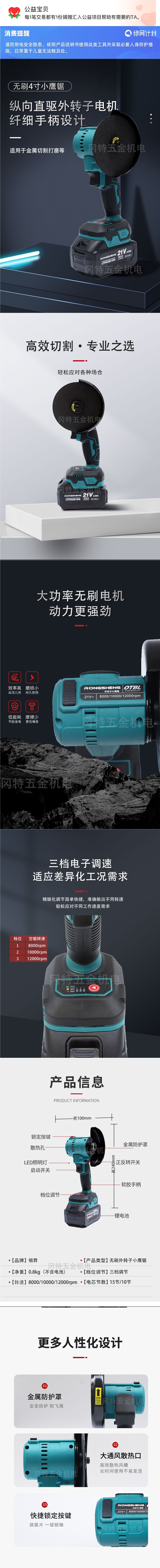 外转子无刷锂电小鹰锯4寸角磨机木材切割机充电清缝机手锯磨光机