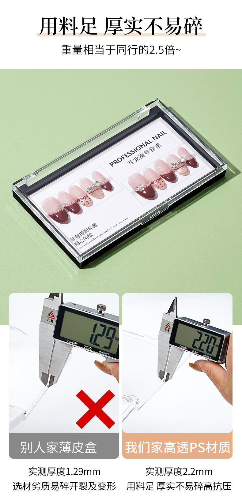 ins轻奢风穿戴甲卡片展示卡纸加高加厚高级甲片展示长方形收纳盒