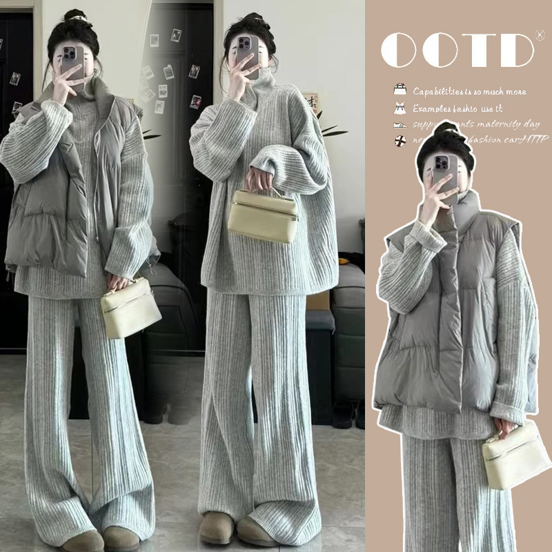 2025孕妇秋冬软糯亲肤方领毛衣休闲时宽松套装+百搭休闲棉衣马甲