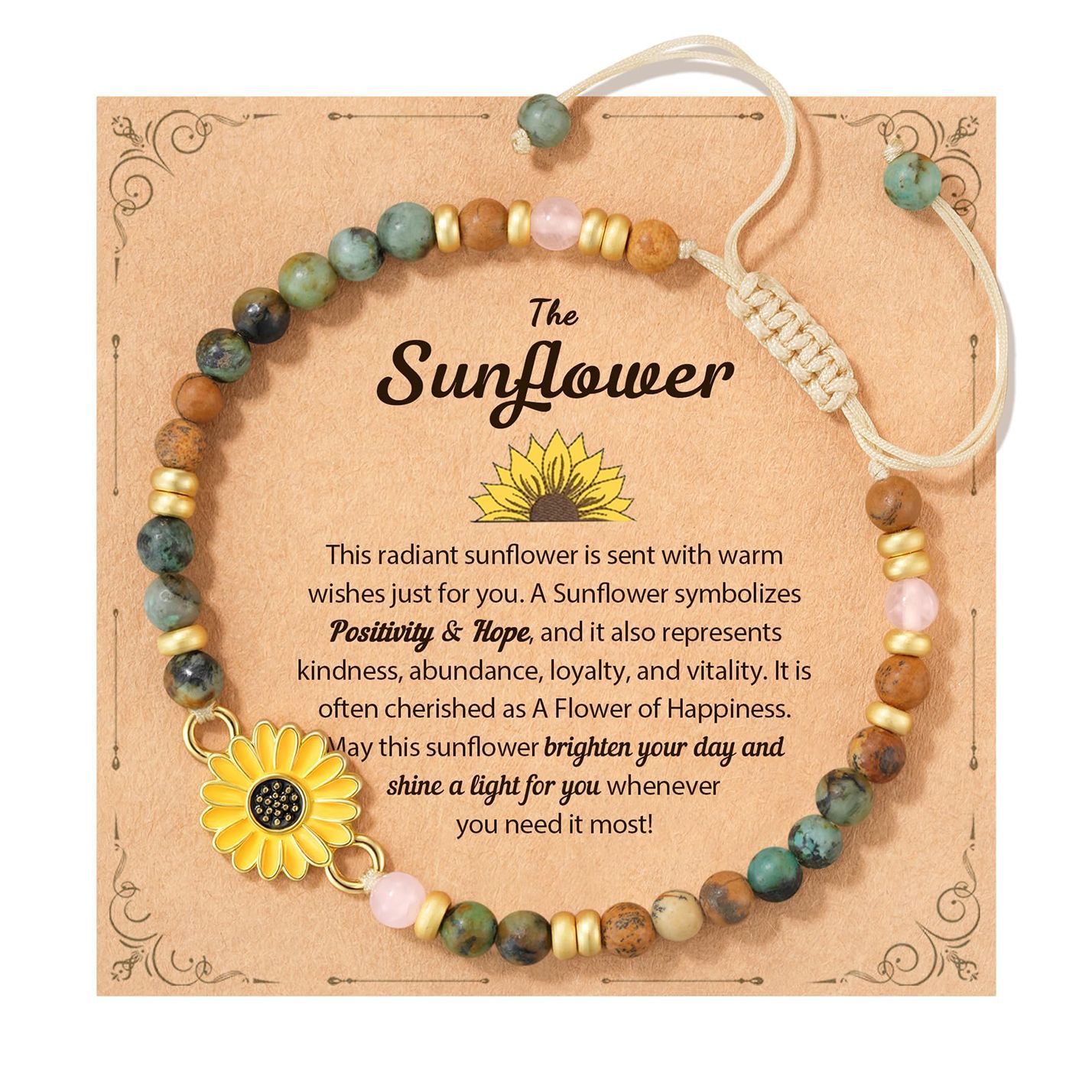 4mm天然石手链图画石金色隔片串珠平结编织手链非洲松向日葵手链