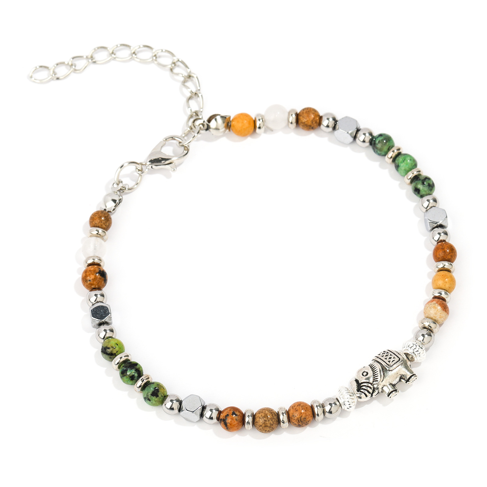 4mm非洲松手链寿山石银珠串珠不锈钢大象吊坠手链非洲松大象手链