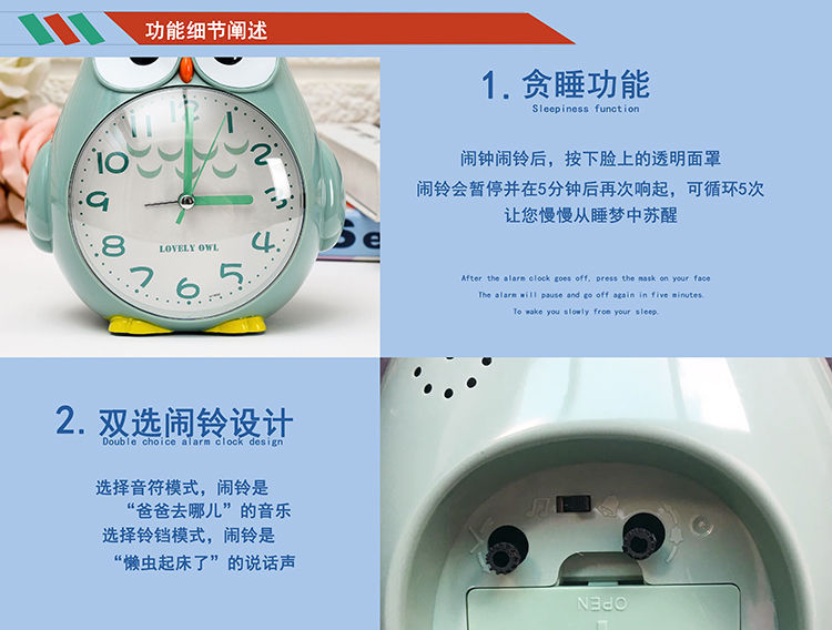 儿童闹钟会说话叫懒虫起床音乐学生用床头多功能可爱床上用品批发