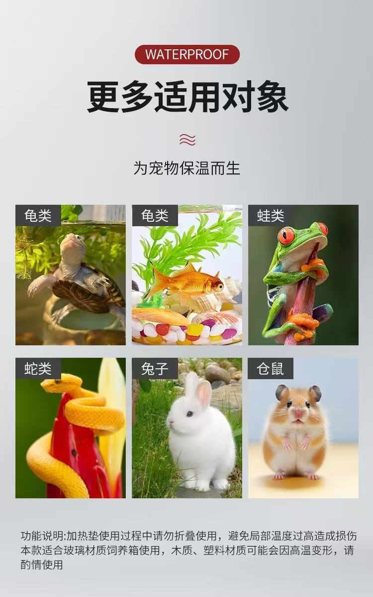 宠物加热垫爬宠箱乌龟爬虫蛇守宫蜥蜴仓鼠寄居蟹斗鱼桌面鱼缸加温