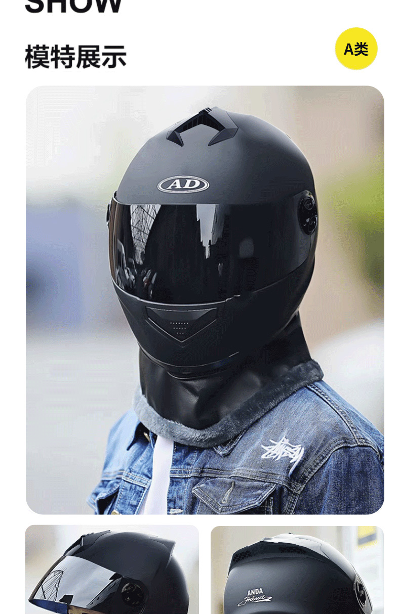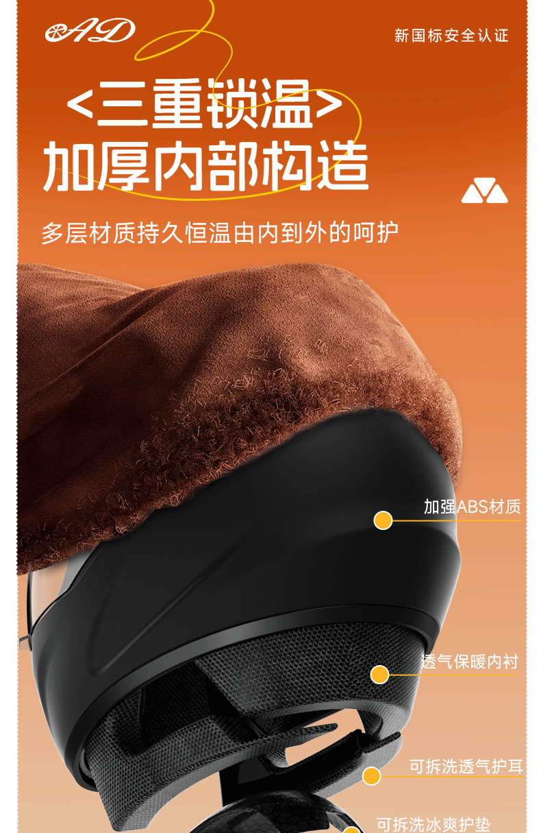 AD电动摩托车头盔男女士电瓶车冬天防寒全盔冬季保暖3C认证安全帽