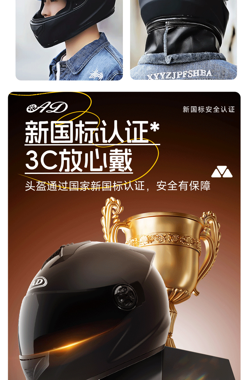AD工場新国家規格認証電動バイクヘルメット男女兼用四季通用オートバイフルフェイスヘルメット秋冬安全