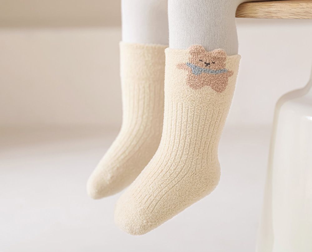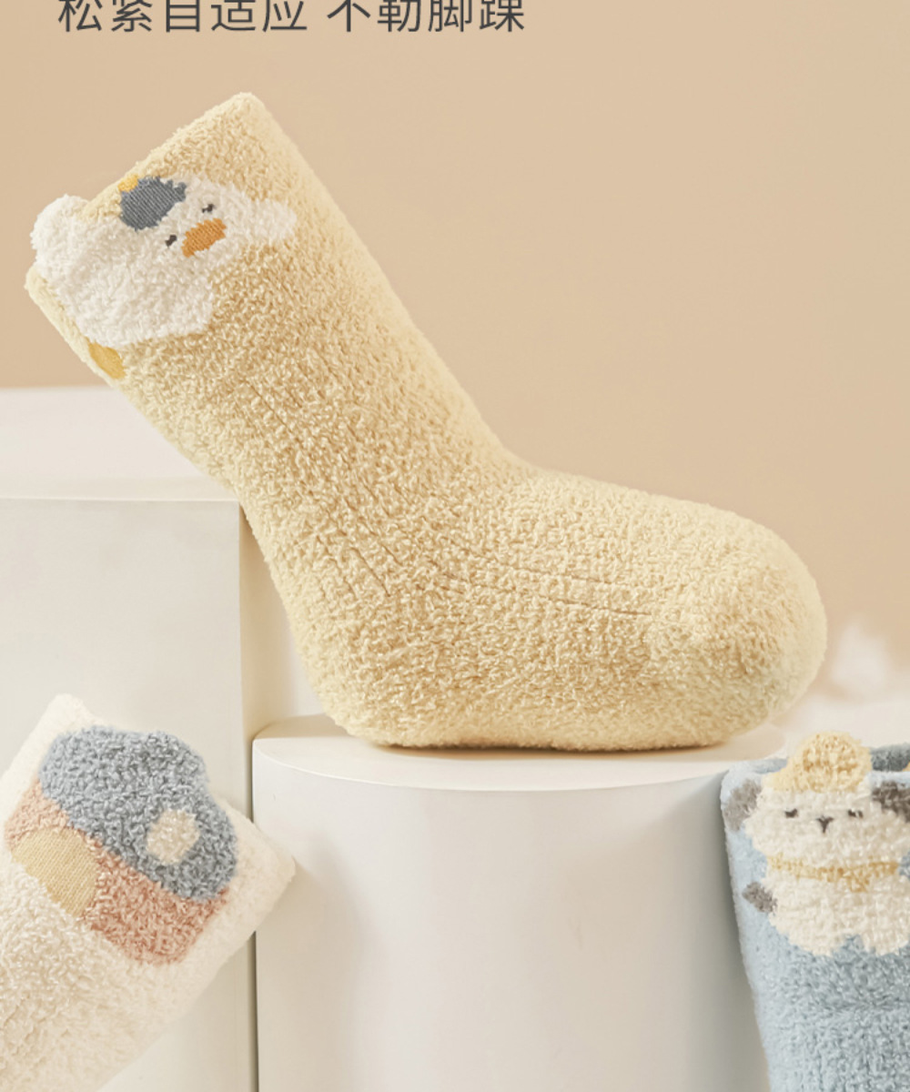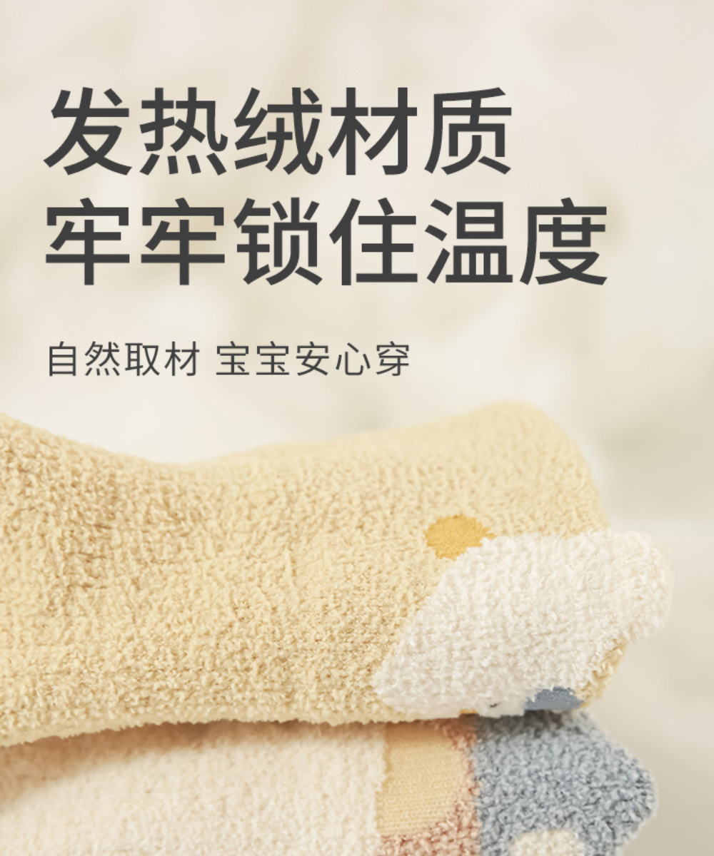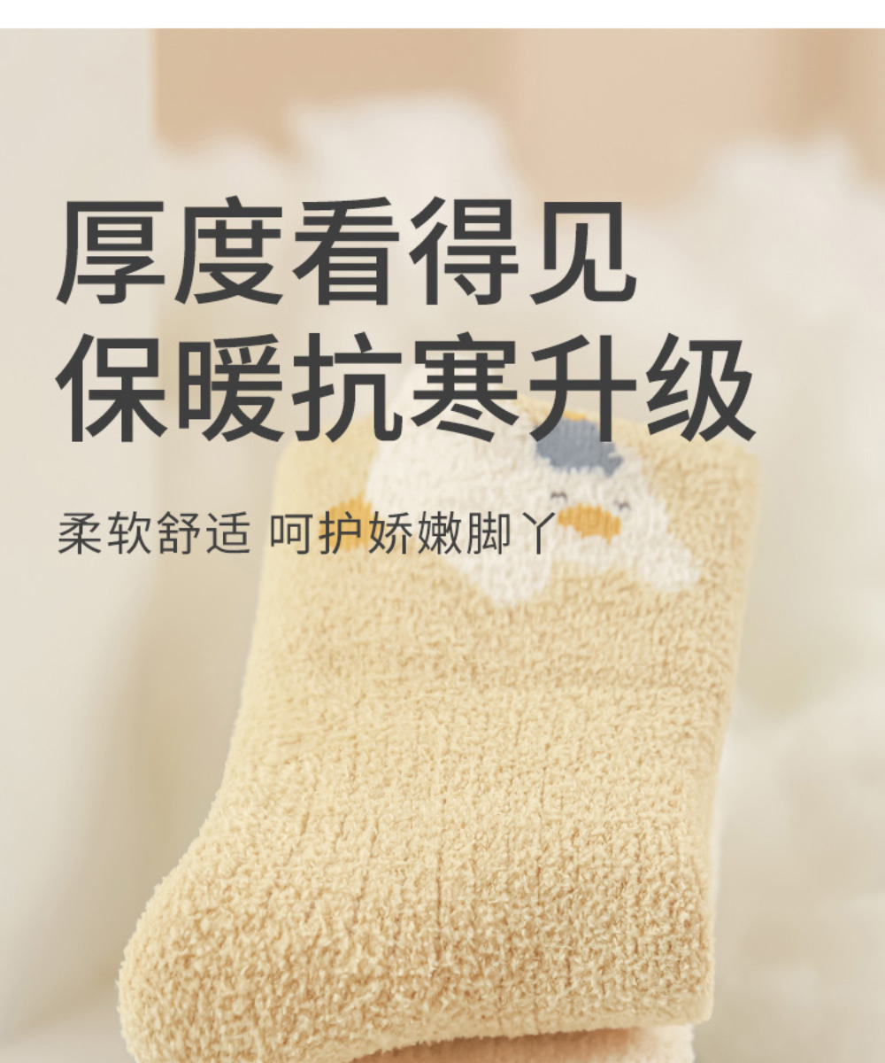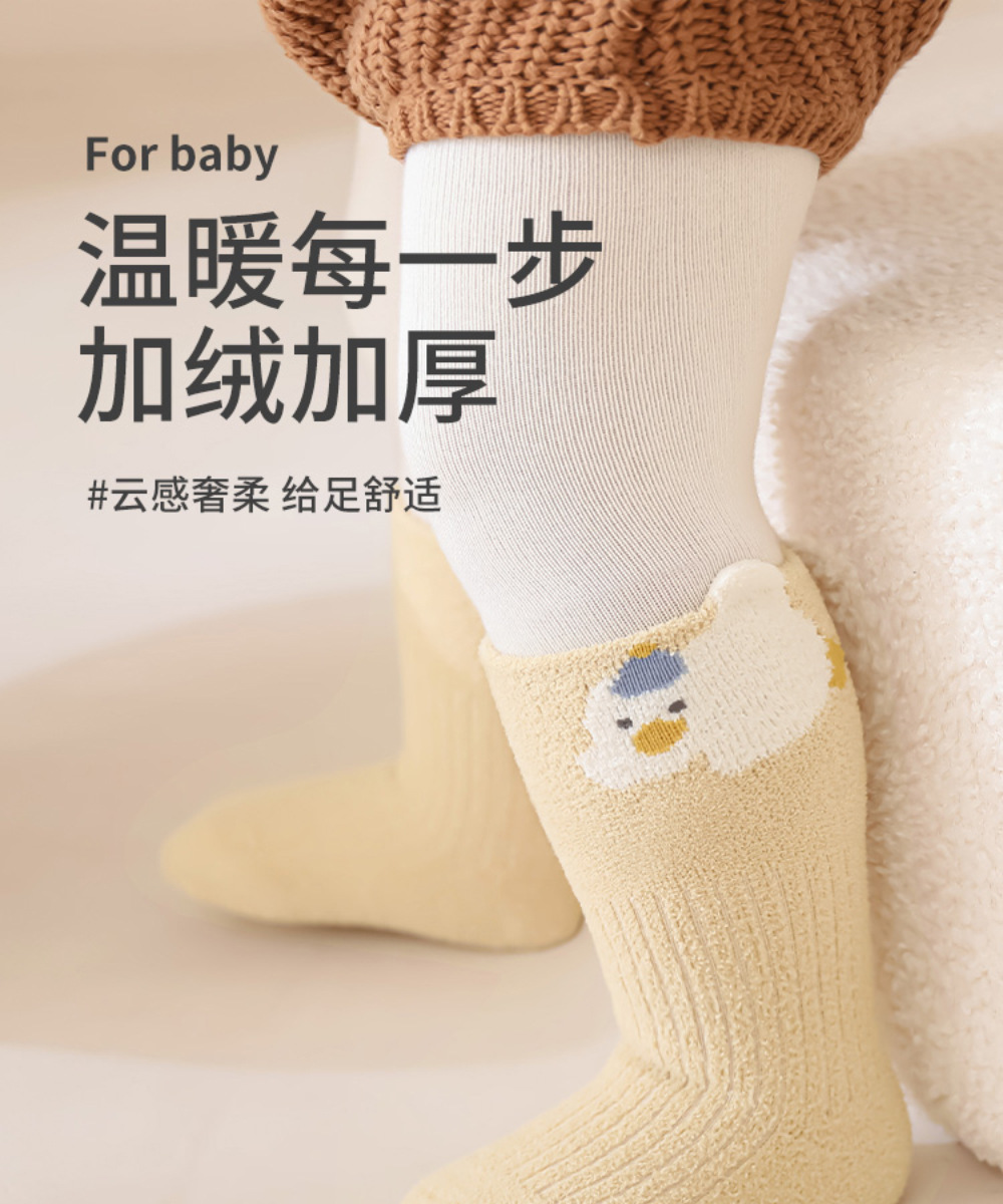 贝肽斯婴儿袜子秋冬加绒新生儿宝宝加厚中筒袜男女儿童珊瑚绒袜子