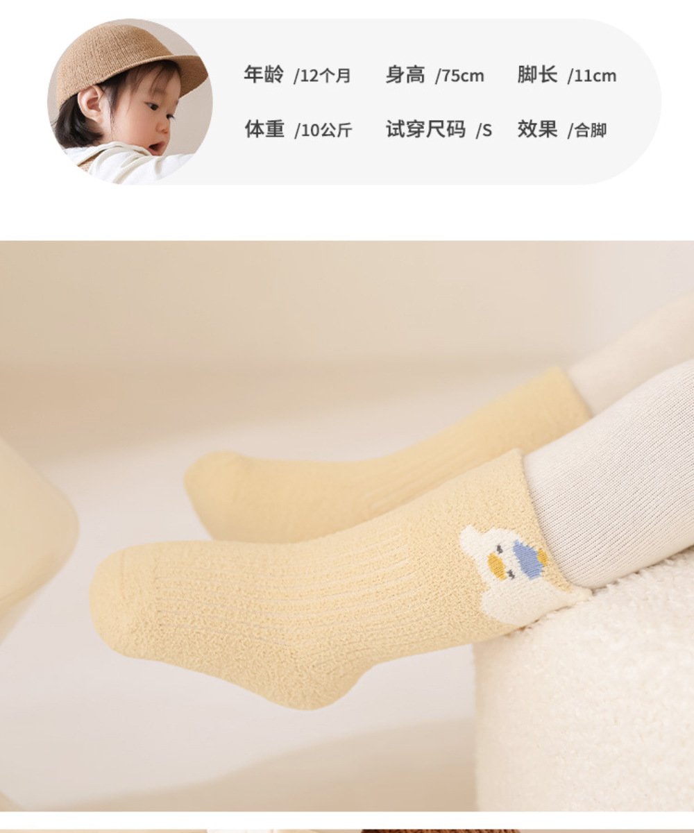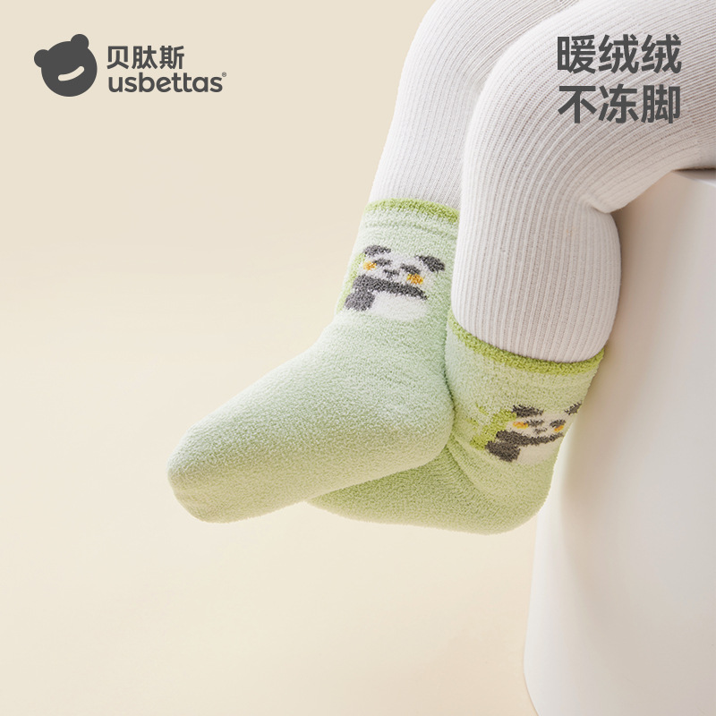 贝肽斯宝宝袜子冬季加厚保暖双面绒隔凉防滑新生a类秋冬女男婴儿