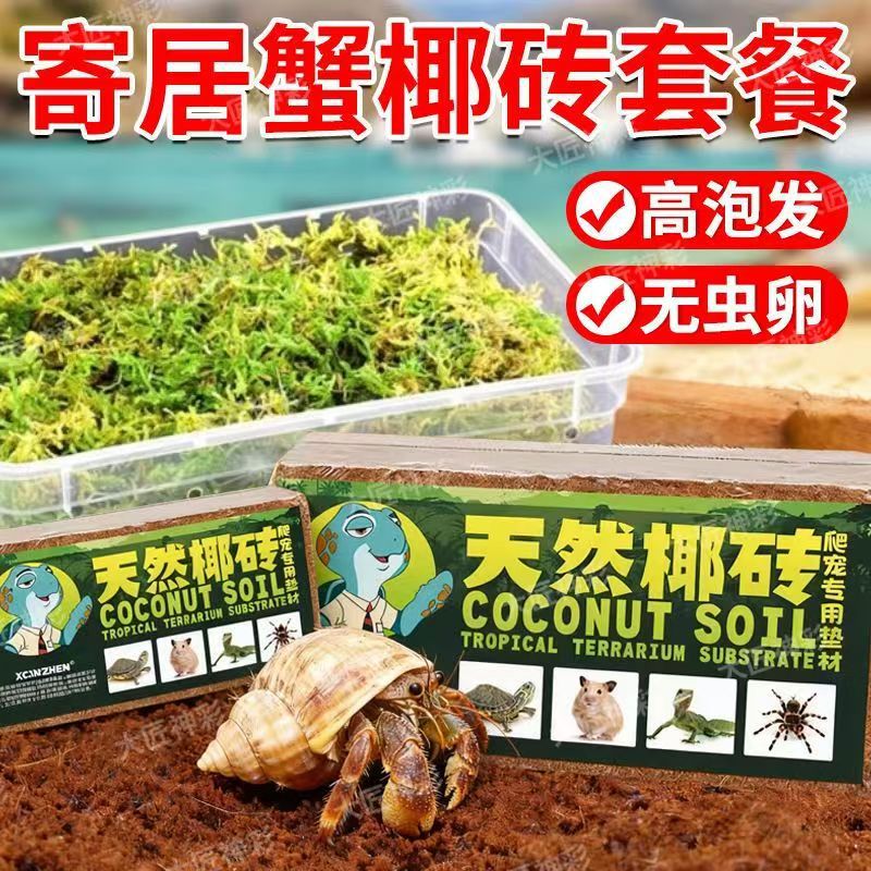 椰砖加苔藓寄居蟹专用沙饲养缸套装垫材用品乌龟冬眠爬宠垫料椰土