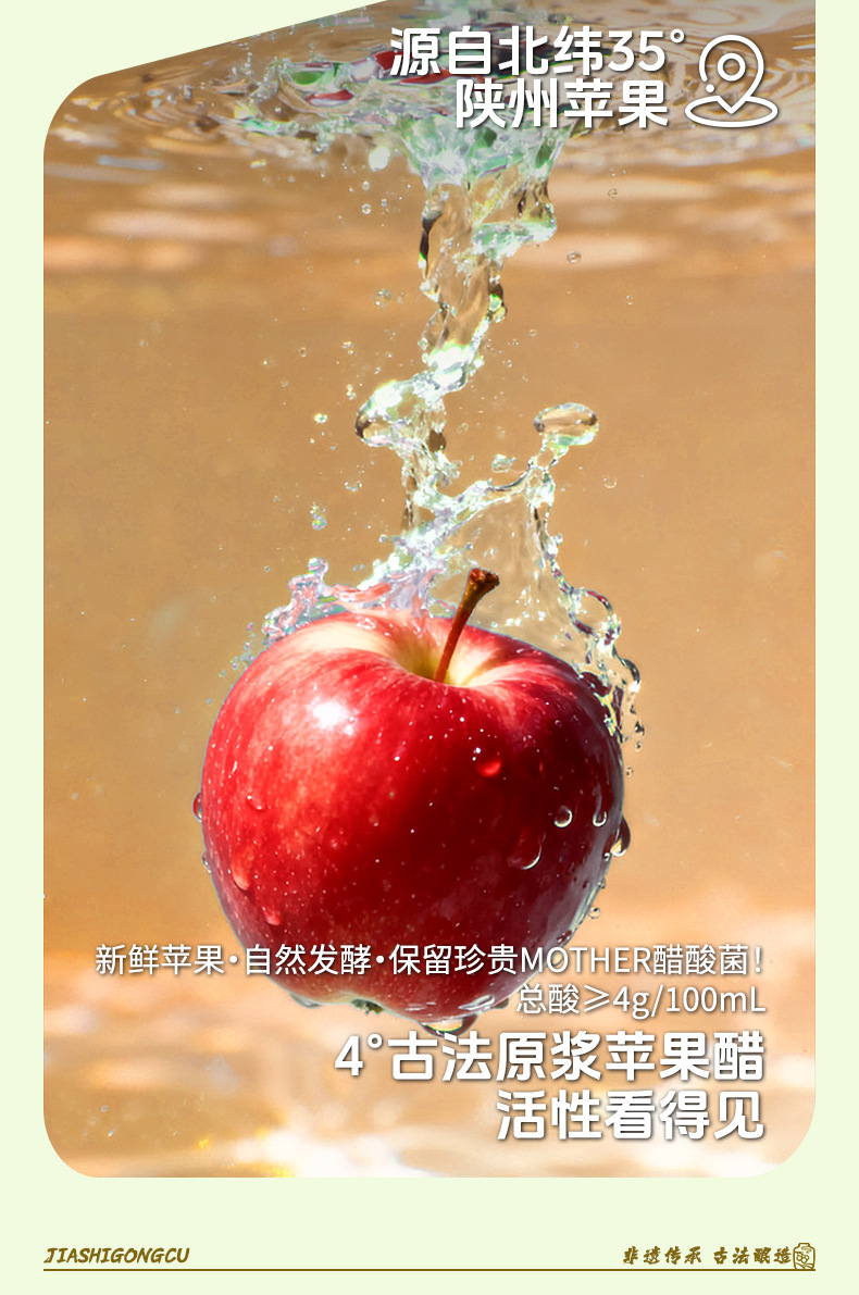 Jia's Gong Vinegar リンゴ酢 OEM カスタマイズされたプレバイオティックリンゴ酢 OEM ピューレ発酵果実酢 OEM メーカー