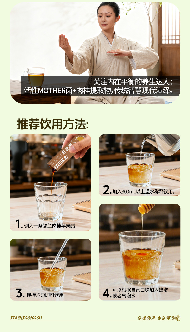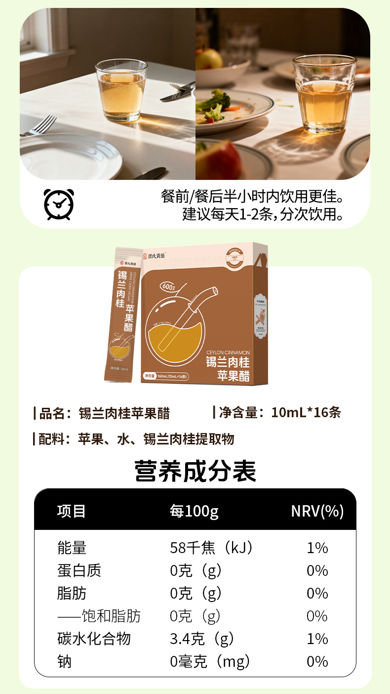 包装规格 锡兰肉桂原浆苹果醋10ml*16,富硒苹果醋15ml*25,玫瑰醋10ml*12,直饮原浆(薄荷风味)20mI*12,体验装10ml*3条