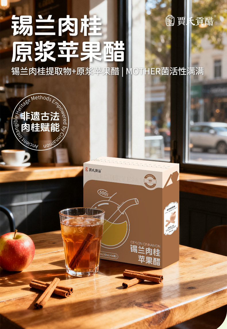 贾氏贡醋锡兰肉桂苹果醋条装独立包装肉桂原浆苹果醋盒装正品包邮