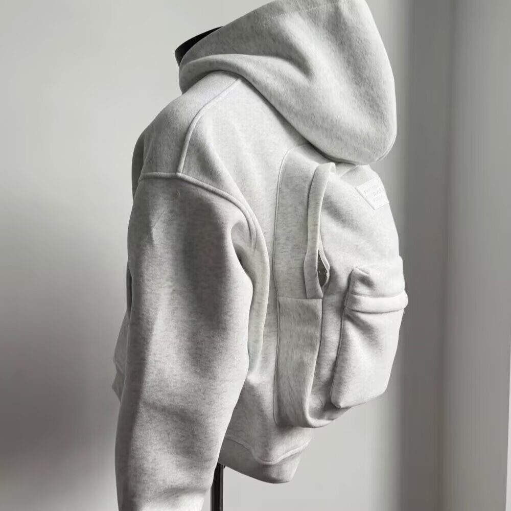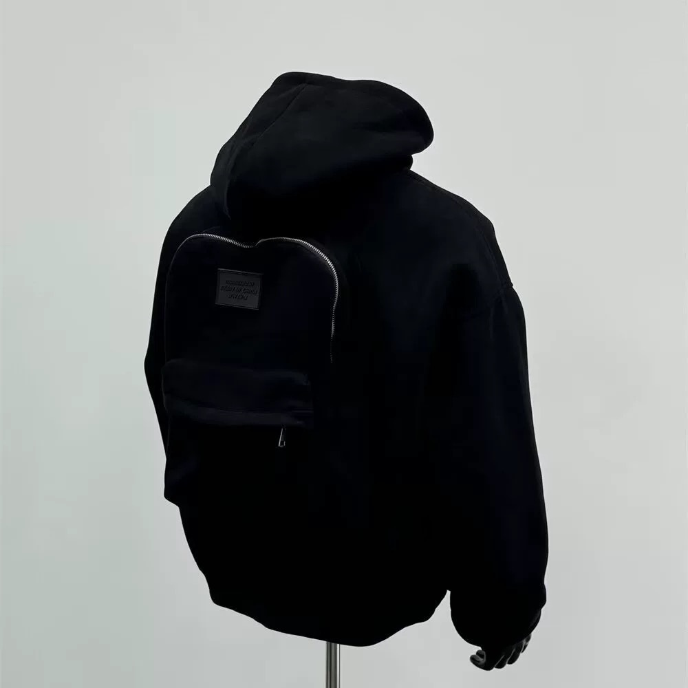 外贸批发潮牌立体背包开衫卫衣男连帽休闲拉链设计感耐穿百搭外套