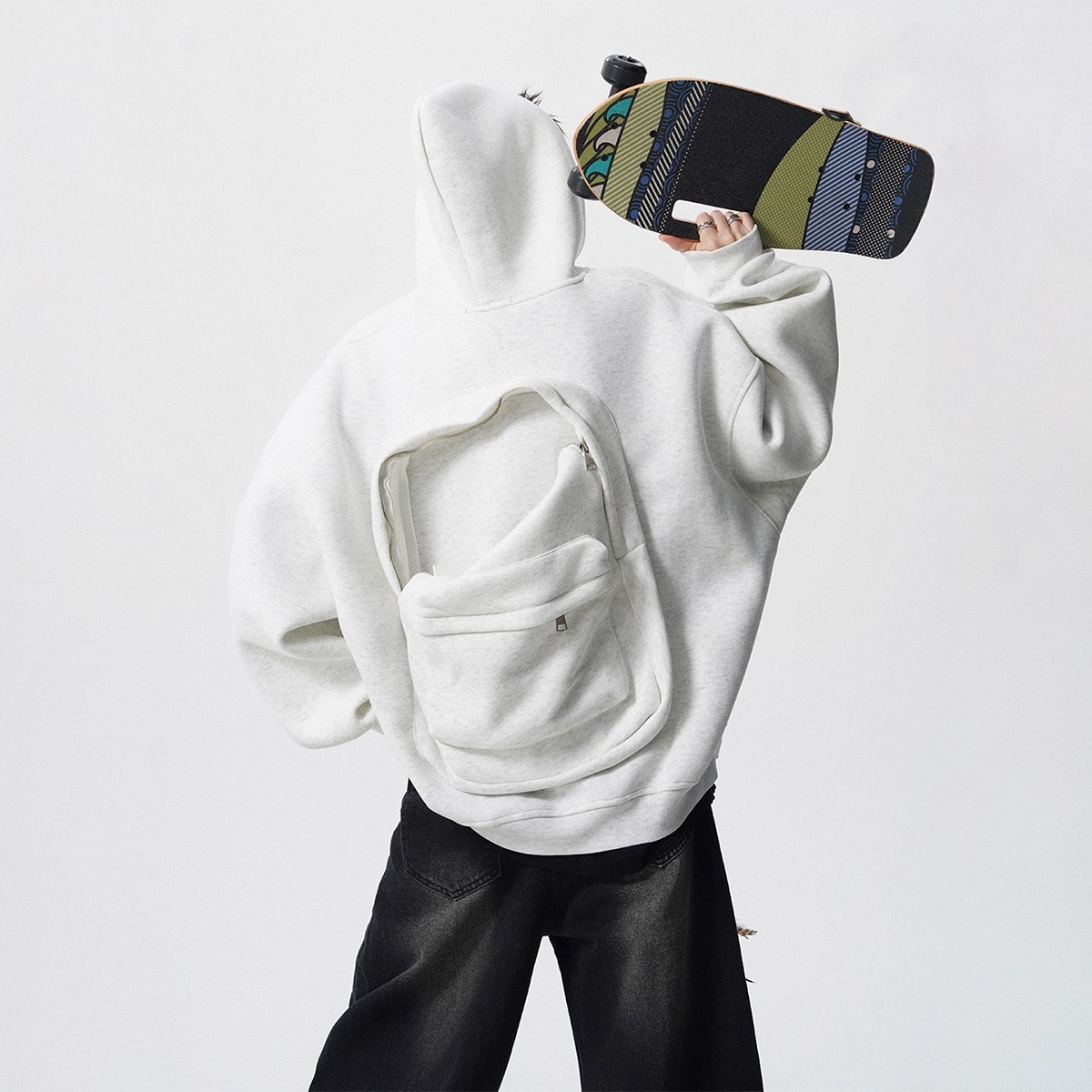 立体书包卫衣小众设计感连帽衫男宽松耐脏磨外套美式百搭背包开衫