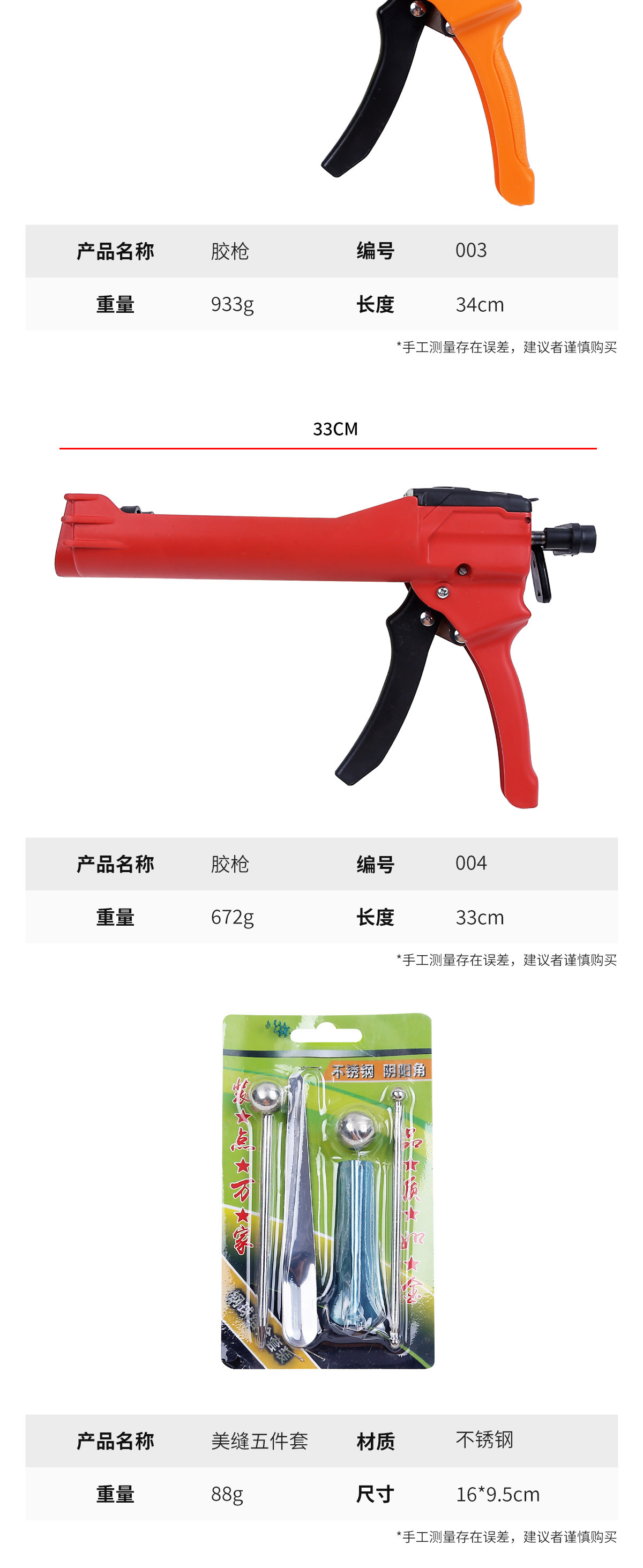 规格型号 红色铁美缝胶枪,蓝色液压省力美缝枪,K3双杆省力美缝胶枪,红色塑料美缝胶枪,美缝五件套