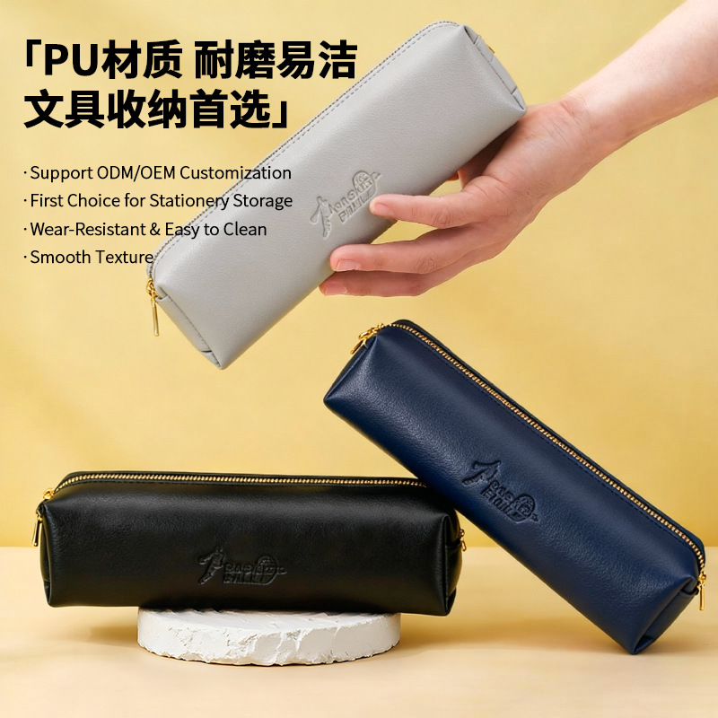 新型シンプルペンケース 大容量PUレザー 汚れにくい鉛筆ケース 学生用文房具収納 クリエイティブペンケース 卸売